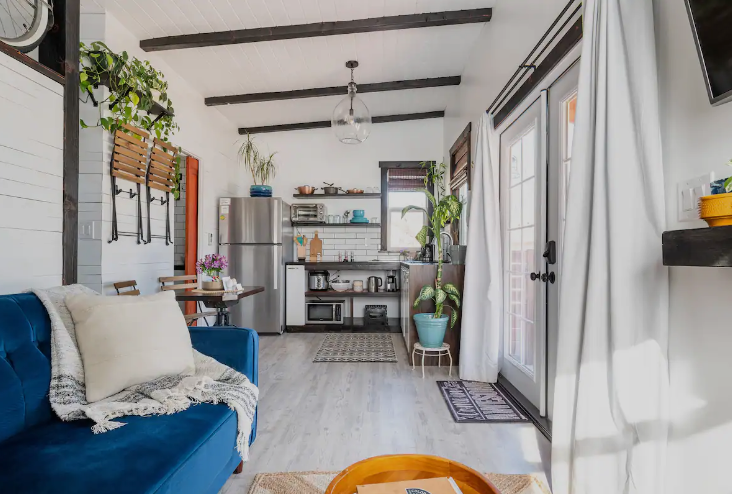 Nestled in the serene Divine Redeemer neighborhood, this backyard cottage offers a private haven. Located just across the garden and hen house from the main residence, this beautifully renovated tiny house provides a bright retreat. An integrated cruiser bike in the decor adds a unique touch, perfect for cyclists or enthusiasts. Close proximity to downtown makes biking there a breeze, while an essential visit to nearby is the U.S. Olympic & Paralympic Training Center.