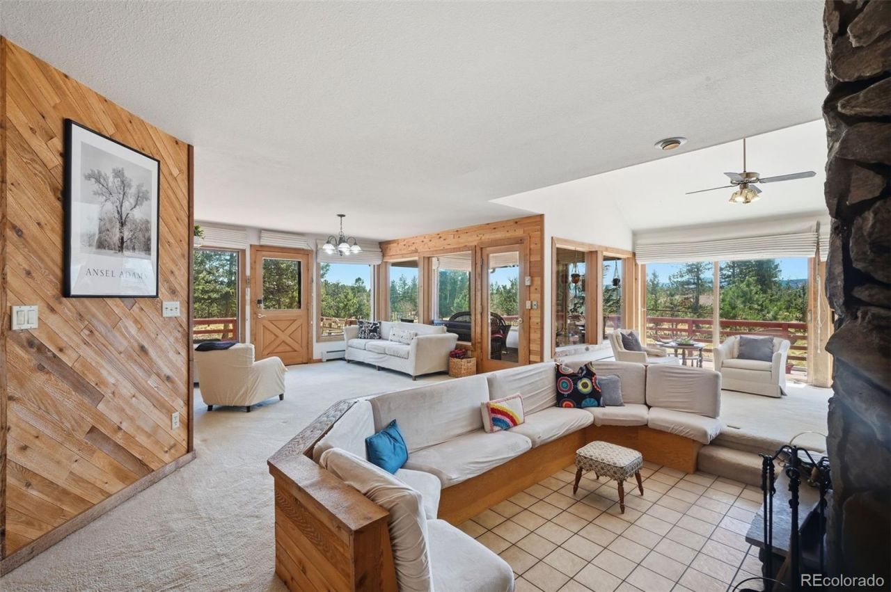 Welcome to your serene mountain getaway on 3.45 acres, full of wildlife and ready for guests. This contemporary mountain property offers peace, sun and privacy, with an incredible 6,500 square feet and unique features! A confirmed horse property, the lot is flat, buildable and fire-mitigated, offering a southern exposure with mountain & meadow views and frequent wildlife visitors. Inside, copious beds / baths - along with living, family and basement space (able to be finished) - offer a true multi-generational living space. The home offers vaulted ceilings, three rooms with fireplaces, offices / dens and a combo sauna / steam room in the primary suite! From the front entrance, several living / family rooms offer a warm welcome. Formal dining is off the kitchen, and additional dining exists at the kitchen island and between the kitchen and family room. The family room includes sunken bench seating around a wood-burning fireplace, along with a sunroom / indoor greenhouse fully plumbed for watering and maintaining plants! Two bedrooms on the main level are off the 2-car oversized garage. The primary suite on the other side of the home has an expansive walk-in closet and primary bathroom, gas fireplace, combo sauna / steam room (needs a plumbing fix) and additional receiving room with wet bar! Upstairs three more beds share a full bath, with additional office / den and loft doubling as a naturally-lit winebrary! Upstairs closet is plumbed for sink / laundry. Unfinished basement (accessible via garage) is ready for your game room finishes. Large windows make this home light and bright, but window coverings / blackout curtains throughout (all included) maintain the internal climate and save energy. Three patios were recently stained and the kitchen includes sliding glass doors to welcome nature. Driveways go to front door and garage. Ten minutes from historic Bailey, restaurants, shopping, winery & highways. This home is unique and full of character - see it today!