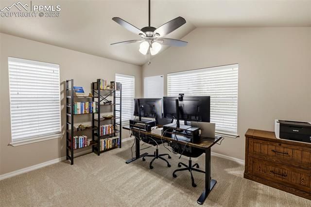 Positioned on a premium corner lot in the sought-after Flying Horse community, this ranch-style home offers true main-level living, a finished basement, and views of Pikes Peak, all within Academy School District 20. Thoughtfully designed with an open layout and quality finishes throughout, the home blends comfort, function, and everyday livability. Vaulted ceilings and expansive windows create a bright, open feel across the main living spaces, while recent interior paint updates in the kitchen and living room, along with brand-new carpet throughout, add a fresh, move-in ready touch. The kitchen features stone countertops, a large island with seating, stainless steel appliances, a pantry, and seamless flow into the dining area and great room with a gas fireplace and walkout access to the backyard. The primary suite offers a private retreat with vaulted ceilings, a sitting area, walk-in closet, and a five-piece bath complete with dual vanities, soaking tub, and separate shower. A secondary main-level bedroom and full bath, along with convenient main-level laundry, complete the main floor. The finished basement expands the home’s versatility with a spacious recreation room, wet bar, three additional bedrooms, and a full bath—ideal for guests, hobbies, or flexible living. Outdoors, the fully landscaped yard and large concrete patio create an inviting setting for relaxing or entertaining, with a hot tub included. Additional features include smart home elements, central air, humidifier, auto sprinkler system, and a three-car attached garage. Located near parks, trails, and Flying Horse amenities—including golf, fitness, pools, and dining—this home offers a well-rounded lifestyle in one of Colorado Springs’ most desirable communities.