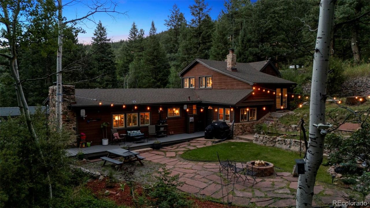 Discover a rare Colorado foothills retreat offering privacy, character, and modern upgrades on eight wooded acres with a seasonal creek, just 20 minutes from Denver metro amenities. This exceptional property combines natural beauty with thoughtful updates, creating the ideal balance of secluded mountain living and convenient city access. Surrounded by mature trees and abundant wildlife, the home is filled with natural light and features a distinctive treehouse-inspired aesthetic that enhances its true Colorado mountain vibe. Two fireplaces provide warmth and charm throughout the year, while expansive windows frame peaceful forest views from nearly every room. The serene outdoor living space includes a spacious deck, patio, and tranquil water feature?perfect for entertaining or relaxing in your own private woodland setting. A detached small cabin adds exceptional flexibility and value, offering the perfect space for a home office, art or music studio, guest retreat, childrens playroom, or potential rental opportunity. Inside the main residence, updates are evident throughout, including newer KitchenAid appliances and a beautifully renovated, spa-inspired primary bathroom. Mechanical and infrastructure improvements include generator pre-wiring, updated chimney caps, enhanced sump pit and pump systems, new gas lines, and a professionally installed exterior lighting and camera system, ensuring comfort and peace of mind. Ideally located for commuters and professionals, the property offers easy access to major employment centers including Lockheed Martin facilities, as well as recreational and lifestyle destinations such as Ravenna Golf Club, Deer Creek Canyon Park, and South Valley Park. With convenient connections to C-470 and the 285 corridor and nearby National Forest access for hiking, biking, and outdoor adventure.