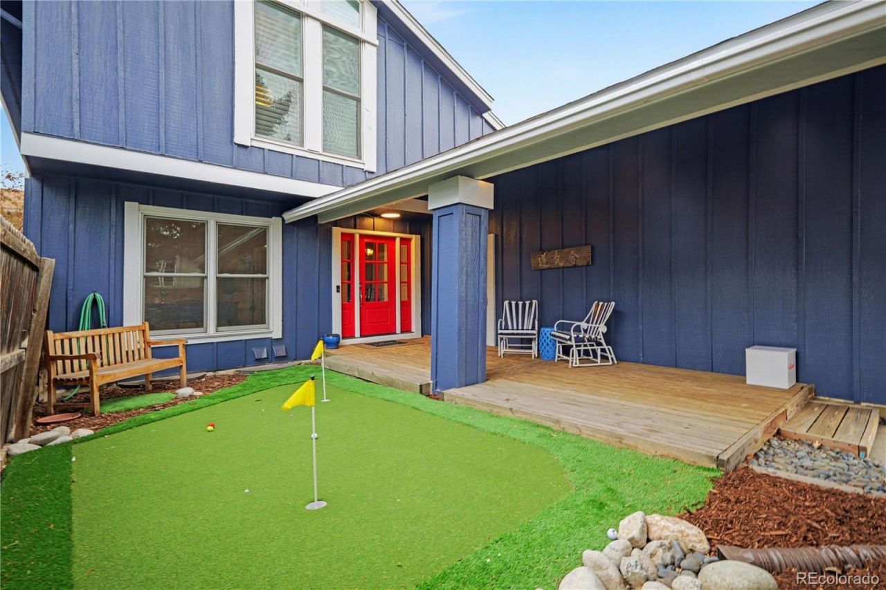 Welcome home to this standout gem in Dam East ? one of the neighborhoods most sought-after floor plans. From the moment you arrive, a private covered patio with your own putting green sets the tone for the lifestyle this home offers. Step inside through a brand-new front door with keyless entry, designed to flood the space with natural light while keeping the elements out. The versatile main-floor flex room adapts to your needs ? whether a guest room, home office, playroom, or single-level living. The living room impresses with soaring vaulted ceilings and a high-efficiency 32,000 BTU gas fireplace insert with outside air draw, perfect for cozy Colorado evenings. A dedicated main-level laundry room is a rare find in this neighborhood ? and its all yours. Toward the back of the home, a warm family room flows into an eat-in kitchen featuring quartz countertops, newer appliances, and a beverage fridge ? ideal for entertaining. Step outside to a composite deck shaded by mature trees, a greenhouse planter box for growing your own herbs and vegetables, and a second sunny patio for soaking up those Colorado afternoons. The finished basement offers a TV room, workout area, and two generous storage spaces. Upstairs, the primary suite features a walk-in closet and en suite bath, accompanied by two additional bedrooms and a full bath.Throughout the home: high-efficiency windows with plantation shutters, and an updated furnace (2013) and AC (2018).Perfectly situated next to Nine Mile Station and steps from a major retail redevelopment anchored by a 79,000 sq ft King Soopers. The neighborhood features walking trails, playgrounds, a community pool, and tennis and pickleball courts ? all supported by an active HOA with year-round events for residents of all ages.