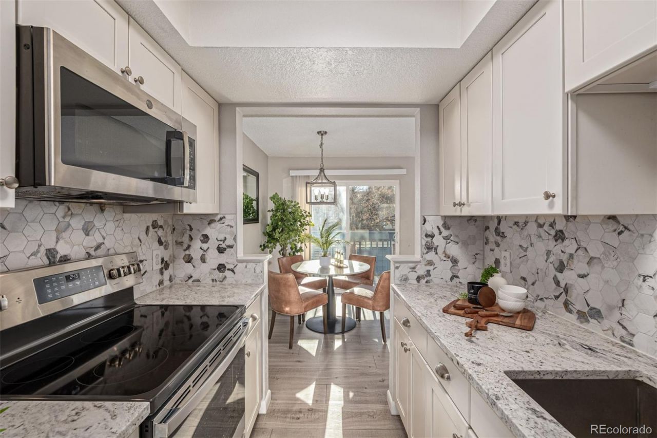This renovated end unit in The Louisiana Purchase II community offers an incredible opportunity with an assumable VA loan at 3.125 percent for qualified buyers and a location that places you minutes from Buckley Space Force Base, 225, parks, shopping, dining, everyday essentials, and major conveniences throughout Aurora. This bright and inviting one bedroom one bathroom home has been updated throughout and features a beautifully renovated kitchen with granite countertops, stylish tile backsplash, modern appliances, ample storage, and a clean contemporary feel. The living room is filled with natural light and centered around a cozy wood burning fireplace that adds warmth and charm to the open layout. The bedroom offers generous closet space, and the bathroom includes an updated vanity, refreshed tile, and modern fixtures. The stackable washer and dryer are located in a hallway closet for easy access without interrupting the flow of the kitchen. This home also includes a rare one car attached garage directly beneath the unit with remote access and a large private storage room beside the garage that is perfect for bikes, gear, tools, or seasonal items. The private balcony gives you a comfortable outdoor space to unwind, sip a coffee, or enjoy fresh air any time of day. The Louisiana Purchase II complex offers well maintained grounds, a unique glass enclosed indoor pool for year round enjoyment, tennis courts, green spaces, sidewalks, and direct access to the bike and walking path behind the community that connects into the Aurora trail system. Side Creek Park is only moments away with open fields, playgrounds, sports courts, picnic areas, and long stretches of scenic walking paths. With its central location near Buckley, 225, King Soopers, Safeway, Natural Grocers, restaurants, coffee shops, and retail options, this move in ready condo delivers comfort, convenience, and an extremely rare interest rate opportunity that is almost impossible to find in todays market.