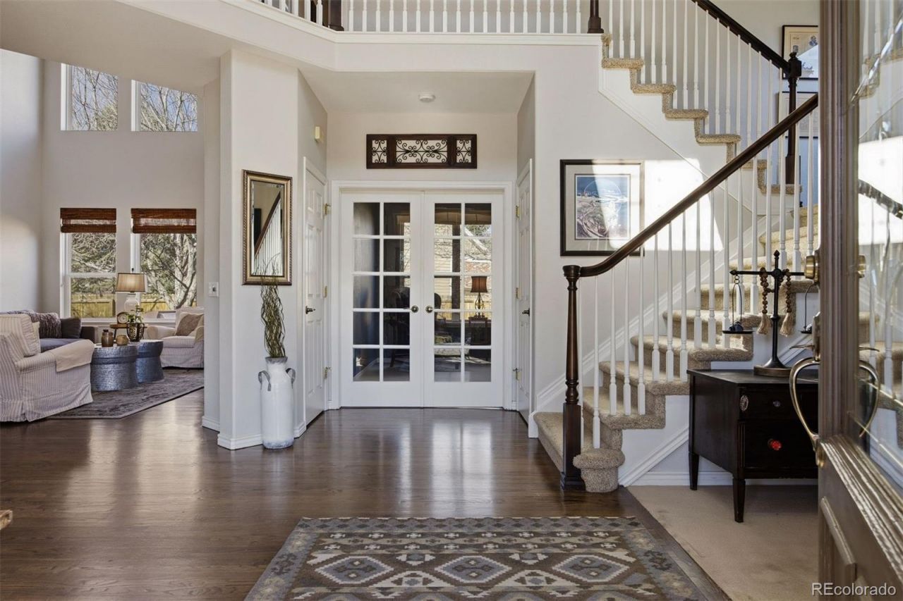 This exceptional two-story home offers 4 bedrooms and 3½ bathrooms and will take your breath away with its style and pristine condition. Thoughtfully designed with open living and dining spaces, the home is filled with natural light from expansive windows throughout.The dramatic two-story family room features a warm stone fireplace accented by built-in glass cabinets and a classic wood mantel ? the perfect gathering place for relaxing evenings or entertaining guests.The kitchen is beautifully appointed with granite countertops, stainless steel appliances, double ovens, gas cooktop, dishwasher, and microwave ? ideal for everyday living and hosting with ease. A main-floor utility room with cabinetry and sink adds convenience.Upstairs, the spacious primary suite includes a private balcony overlooking the stunning backyard retreat. Three additional bedrooms and two full bathrooms complete the upper level.Additional highlights include solid wood flooring, recently replaced HVAC system, partially finished basement with generous storage, and a spacious 3-car garage.Step outside and prepare to be impressed. The backyard is an entertainers dream featuring flagstone and concrete patios and walkways, outdoor kitchen, firepit, and beautifully landscaped, tree-covered surroundings that feel like your own private paradise.Ideally located with convenient access to major interstates, shopping, dining, and highly regarded Cherry Creek Schools. Enjoy nearby Cherry Creek State Park with extensive walking and bike paths, hiking trails, and a renowned off-leash dog park just steps away.Dont miss this exceptional opportunity!