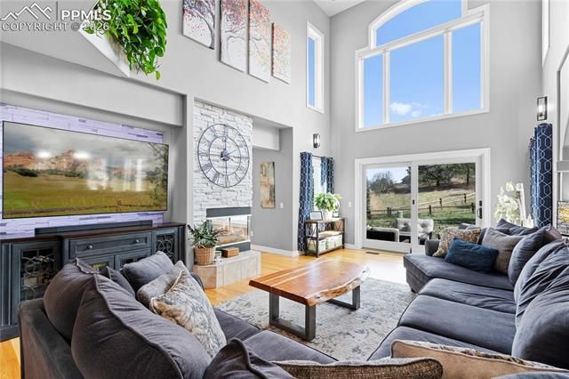 Experience refined Colorado living in this beautifully updated 5 bedroom, 4 bath residence, ideally positioned between Denver and Colorado Springs. Surrounded by the best of Monument, you are just minutes from dining, shopping, access to Monument and Palmer Lakes, scenic hiking trails, highly rated schools, and the United States Air Force Academy. From the moment you enter, the home makes a striking impression with fresh interior paint, abundant natural light, and a dramatic 18-foot ceiling that elevates the main living space. A gas fireplace anchors the room, creating a warm and inviting atmosphere designed for both everyday living and entertaining. The kitchen has been thoughtfully enhanced with newer appliances, including a refrigerator, dishwasher, microwave, and gas cooktop, offering both style and functionality. The primary suite serves as a private retreat, complete with its own gas fireplace, providing a peaceful and luxurious space to unwind. The finished basement expands the home’s versatility and features a custom stacked stone dry bar, ideal for hosting gatherings or enjoying relaxed evenings at home. Outdoor living is equally impressive. A recently installed stamped concrete patio paired with a stacked stone seating wall creates a sophisticated setting for entertaining or enjoying Colorado’s natural beauty. The included hot tub adds an element of resort-style relaxation, while the dedicated dog run with artificial turf offers convenience and low-maintenance care for pets. Additional upgrades include a newer Andersen front door and rear sliding door, a certified hail-resistant tile roof, and a recently installed water heater in October 2025. The oversized three-car garage provides generous space for vehicles, storage, and recreational gear. This is a rare opportunity to own a meticulously maintained and thoughtfully upgraded home in one of the area’s most desirable locations, where convenience meets elevated living.