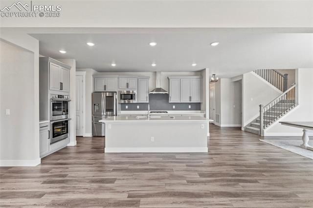 This stunning custom luxury Aspen View Home offers 6 bedrooms, 5 bathrooms, plus office and over 5,000 sq. ft. on one of the biggest lots with breathtaking mountain and city views in the highly desirable D38 school district. The open-concept main level features LVP flooring, custom window coverings, pull down blinds, upgraded lighting, shiplap accents, and a moody striking fireplace. The gourmet kitchen includes grey cabinetry with pot and pan pull-outs, quartz countertops, a custom herringbone backsplash, and a connected Samsung oven, plus a butler’s pantry and mudroom. A guest suite, office, and pet room with sliding barn door and exhaust fan complete the main level. Upstairs, the primary suite offers sound insulation, his-and-her walk-in closets, a spa-like bath, and stunning views, plus a junior suite, two more bedrooms, a loft, and laundry. The finished basement boasts a gaming/media area, bedroom, full bath and two spacious storage rooms. A fully integrated smart home, it includes a Kwikset smart lock, Alexa-integrated switches, Ring security, smart thermostats, a LiftMaster garage opener with camera, and Wi-Fi-enabled circuit breakers. The 3-zone climate system (4 with the garage) ensures optimal comfort. Additional features include a Super V Whole Home Air Filtration System, Pentair SensaPro Water Treatment, durable PEX plumbing, a high-efficiency tankless water heater, prewired CAT-6e, custom landscaping with a garden bridge, a sprinkler system, and a fully finished/insulated garage with epoxy floors and climate control. Outside, enjoy the completely flat and beautifully landscaped yard with extended patio with zero edge tot he lawn and plenty of space for entertaining or relaxing while taking in the stunning surroundings. Thoughtfully designed with modern convenience, smart home features, and premium upgrades, this one-of-a-kind home blends luxury, technology, and comfort. Schedule your showing today!