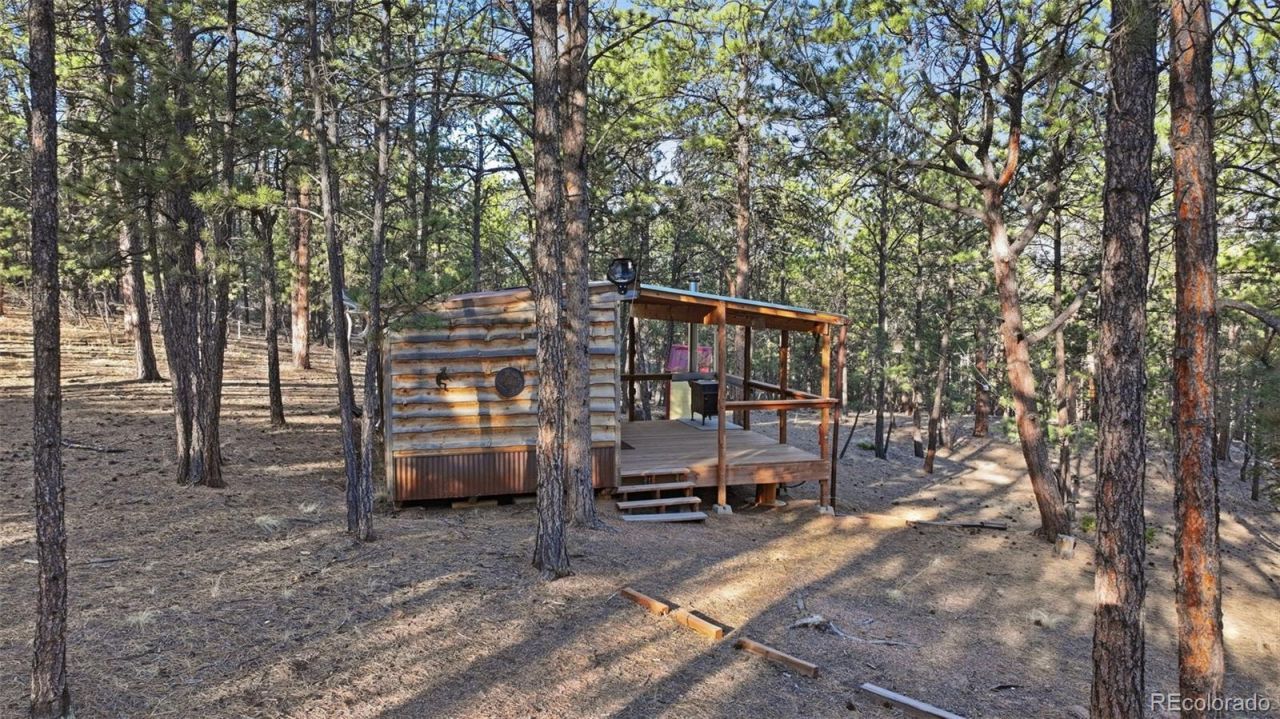 Are you ready for Summer, The Great Outdoors and Glamping? Your turn key mountain escape awaits on this lot where peace, privacy, and towering pines make every day feel like a getaway. Nestled in Florissant Heights, this beautiful 2-acre wooded lot with mature trees offers the perfect balance of seclusion and accessibility?just 40 miles from Colorado Springs, yet it feels a world away. Surrounded by nature, and at approximately 8600, this serene property is ideal for relaxing, unwinding, and escaping the heat, noise and lights of the city.Sold as vacant land, the property includes a charming 171 Sq. Ft. off grid, rustic cabin with a large 12 x 16 front porch, cozy wood-burning stove, and two built-in Murphy-style beds. Equipped with solar power and a generator, its perfect for weekend getaways and glamping. Everything is ready for you so that you can show up and start enjoying the outdoors with a firepit, picnic tables, seating and an outdoor powder room already in place. The Florissant Heights Community also features a pond and warming hut/picnic area. Zoned R-1M, you have the flexibility to bring in a mobile home or build your dream home on this scenic lot. There are electric poles near the rear of the lot. Florissant Heights has a voluntary HOA and covenants. Information can be found at www.florissantheights.com. Available documents also attached to this MLS listing, PLEASE review prior to making an offer. Property is sold AS IS as part of an estate and will be conveyed at closing via a Personal Representative Deed.