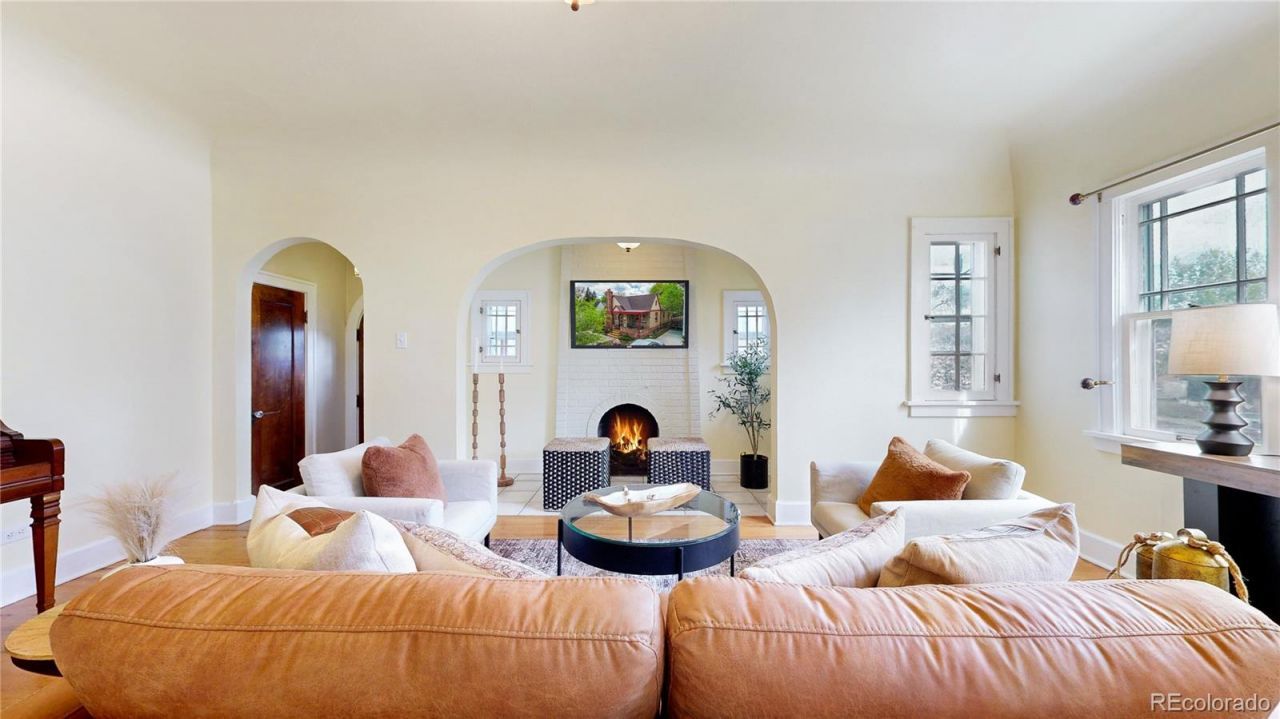 Wow! Great home with 3 bedrooms on the main floor with a bonus 4th bedroom/office in the basement. Gorgeous hardwoods throughout the main. Light and bright. Hard to find large formal dining and cozy family room complete with fireplace welcome you home. Primary bathroom recently remodeled. Completely finished basement doubles your living space and boasts of large great room, office/bedroom, nice full bath, laundry and bonus storage areas. Amazing location, easily walk/bike to Parkhill Elementary, City Park, restaurants, music! Environmentally friendly - assumable solar, electric vehicle ready, xeriscaped. New sewer line, water heater, and carpet. Buyer to verify all.