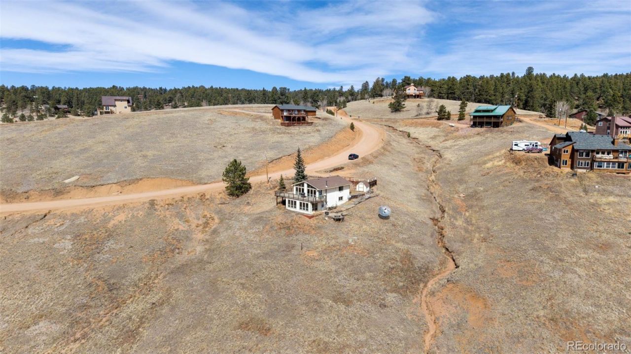 Tucked into the scenic Highland Lakes community, this inviting raised ranch offers a blend of Colorado charm, everyday comfort, and space to truly spread out. Set on 1.39 acres with views toward Elk Lake, the setting feels peaceful and private while still being conveniently located hear Highway 24 for an easy drive to Woodland Park, Colorado Springs, or even a quick trip to Cripple Creek. Inside, the home welcomes you with vaulted ceilings, exposed beam accents, and a wall of windows that brings the outdoors in. The main living area feels open and connected, with the living room flowing into the kitchen, where granite countertops and included appliances make it easy to settle right in. Laminate flooring runs throughout, creating a cohesive and low-maintenance feel. The lower-level family room offers a cozy retreat with a pellet stove and walk-out access to a sunroom that adds even more flexible living space. With tile flooring and a tongueand-groove ceiling, its the kind of room youll find yourself using year-round?perfect as a sitting area, home office, workout space, or playroom. With four bedrooms and two full bathrooms, theres room for everyone, and the updated baths add a fresh, modern touch. Step outside and take in the expansive wraparound deck, ideal for morning coffee, evening sunsets, or simply enjoying the quiet surroundings. Rustic yet refined, the home also features natural gas and high-speed internet, giving you the best of mountain living without sacrificing modern convenience. Located within the RE-2 Woodland Park school district and close to stocked fishing at Elk Lake, this is a property that offers both lifestyle and livability in one of Divides most desirable communities.