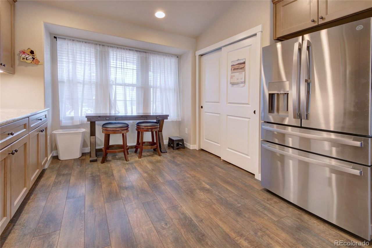 Awesome ranch features gourmet kitchen with granite counter tops, 42 designer cabinetry and hardware, gas range/oven, 4 stainless steel appliance package, counter bar, eat in nook, and huge pantry. This one owner property has an open flowing floor plan and provides lots of natural light as well as tons of storage, and custom blinds throughout. Other home offerings are master bathroom barn door entry and expanded spa walk in shower, a/c, living room gas fireplace with remote and elegant mantle, basement finish with extra high ceilings, and close proximity to parks, trails, restaurants, and shopping. Curbside appeal with mature landscaping and rocking chair front covered porch welcomes you...low maintenance living with stucco/stone siding and artificial grass/xeriscape allowing you to enjoy life, makes you want to stay...welcome home.