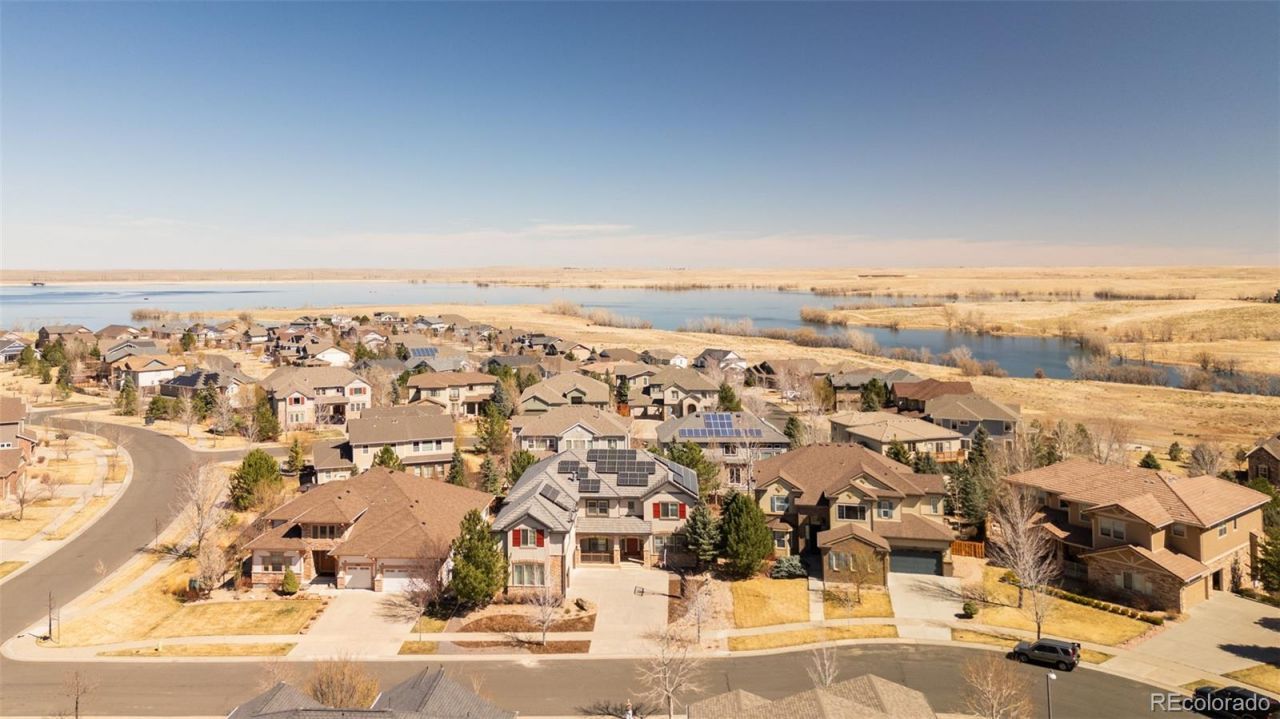 This expansive semi-custom Toll Brothers residence in Beacon Point offers a rare blend of scale, craftsmanship, and modern efficiency designed for both elevated daily living and effortless entertaining. A grand two-story foyer opens into a dramatic great room with soaring ceilings, creating an immediate sense of space and light. The kitchen is both refined and highly functional, featuring double ovens, an induction range, premium appliances, and a walk-in pantry. The main level is thoughtfully designed with a dedicated office, library, and sunroom, along with a well-appointed mudroom and laundry room. A full interior refresh in 2026, paired with custom shutters, hickory hardwoods and updated lighting, delivers a clean, cohesive, and move-in-ready aesthetic throughout. Upstairs, the primary suite is a sanctuary unto itself a built-in Miele coffee maker, wet bar, double-sided fireplace, dual walk-in closets, and a luxurious bathroom create a retreat youll never want to leave. The finished basement extends the living experience with a guest bedroom, KitchenAid appliance package, and an exquisitely finished spa-style bathroom with a private sauna, ideal for guests or multi-generational living. Outdoors, the backyard offers a spacious patio, a tranquil water feature, and water-efficient landscaping, creating a private and low-maintenance setting. The oversized three-car garage is equipped with built-in cabinetry, a workbench, and a dedicated 220V outlet for EV charging. A fully owned 13.1 kWh solar system, R60 insulation, dual-zone HVAC, and Class 4 impact-resistant tile roof deliver exceptional energy efficiency and near-zero utility costs. Residents enjoy a clubhouse, fitness center, resort-style pool, and tennis courts, all steps from Aurora Reservoir and miles of trails. Top-rated Cherry Creek Schools, Southlands Mall minutes away, and both DIA and DTC within 20 minutes complete this extraordinary offering.