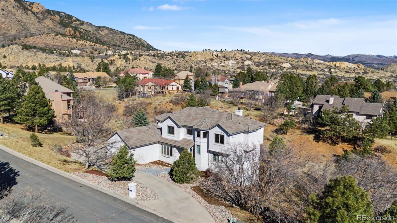 Perched at the Top of Skyway on a private half acre lot, this exceptional home captures some of the most breathtaking panoramic mountain and city views in Colorado Springs. Surrounded by mature trees and natural landscape, the setting offers rare privacy just minutes from the trails of Bear Creek Regional Park and Garden of the Gods. Designed to bring the outdoors in, expansive windows frame the Front Range and fill the home with natural light, while multiple outdoor living spaces, including an oversized Trex deck create the perfect backdrop for morning coffee or evening sunsets over the city lights. Inside, the home features a spacious and functional layout with many updates, beautiful wood flooring, new windows, new large Trex deck, generous living areas, and a thoughtfully designed kitchen ideal for both everyday living and entertaining. The walk out basement adds flexibility for guests, recreation, or multigenerational living. The flat, usable yard which is rare for this location, offers space to play, relax, or host gatherings, all while enjoying the peaceful surroundings of one of the most sought-after neighborhoods in the area. Combining privacy, views, and proximity to outdoor recreation, this is a unique opportunity to experience elevated Colorado living in the heart of Skyway and the Cheyenne Mountain School District 12.