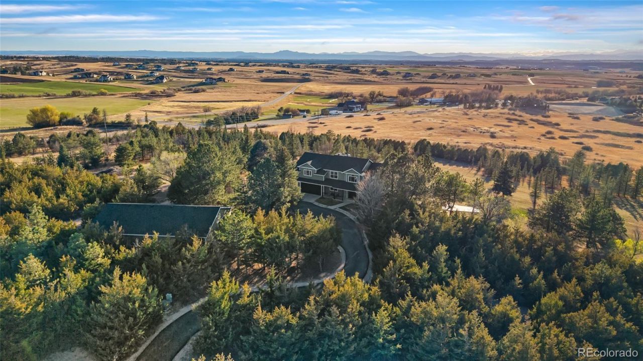 Nestled on 13.91 acres in the coveted Sterling Tree Farm community of Parker, this extraordinary custom estate offers a rare blend of privacy, space, and truly breathtaking Rocky Mountain views?stretching from Pikes Peak to Longs Peak. Set on one of the largest lots in the neighborhood and backing to open space, the property provides a serene, secluded setting with room to roam and enjoy Colorado living at its finest. This home features 5 bedrooms and 5 bathrooms, including two primary suites?one on the main level and one upstairs?each with en suite baths and walk-in closets. The thoughtfully designed floor plan also includes a main-floor office and a private fifth bedroom above the garage with its own entrance - ideal for guests, multigenerational living, or in-law quarters. The recently remodeled kitchen is a true showstopper, showcasing brand-new custom cabinetry, top-of-the-line Sub-Zero and Wolf appliances, an induction cooktop, double ovens, a wet bar. Car enthusiasts and hobbyists will appreciate the oversized 4-car attached garage as well as the impressive 2,200-square-foot outbuilding, offering space for up to 10 additional vehicles including an RV garage door, a half bath, and endless possibilities for storage, toys or workshop. Zoned for two horses and includes water rights! Additional highlights include a walk-out unfinished basement ready for customization, a brand-new hail-resistant roof, new luxury plank flooring, new carpet, fresh interior paint, remodeled bath, a new asphalt driveway, updated water filtration system, all-new siding, rebuilt boiler system, and a newly replaced sewer line. Enjoy low HOA dues and easy access to nearby riding and hiking trails, while remaining conveniently close to the Colorado Horse Park, Centennial Airport, DIA, I-25, and an array of dining and shopping options. With stunning mountain views from nearly every window, this is a truly special opportunity to own a one-of-a-kind Colorado retreat.
