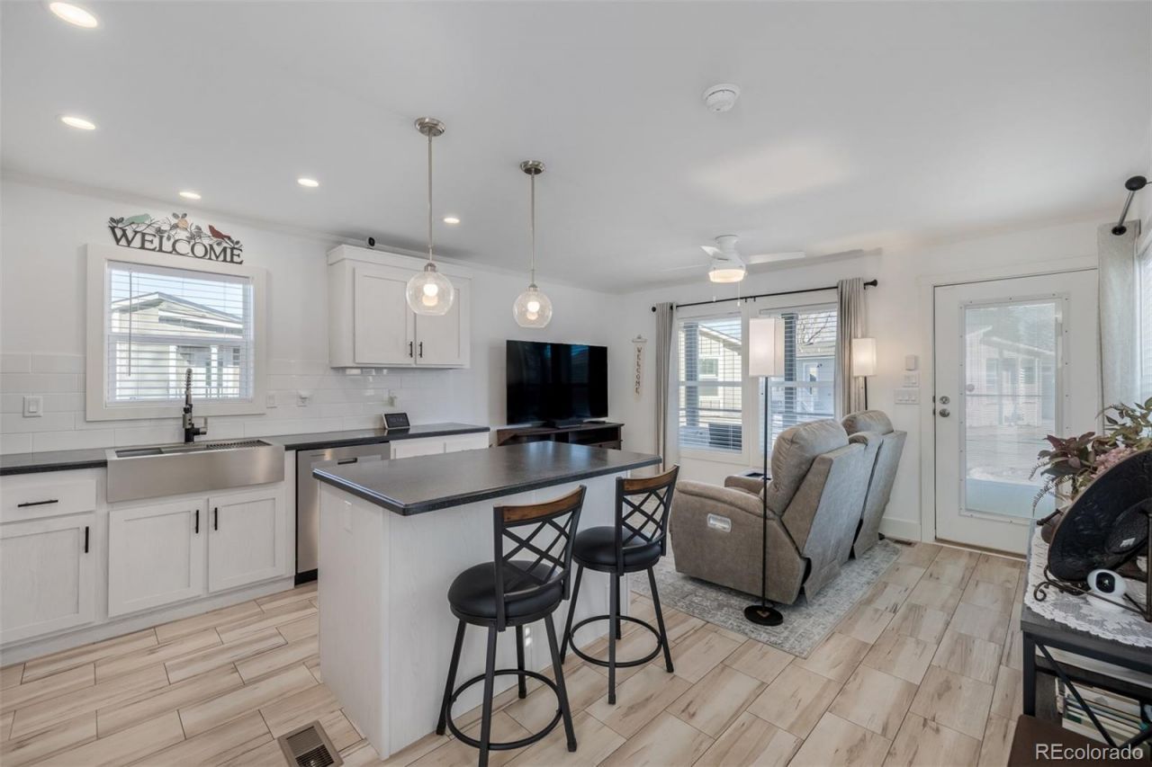Welcome to this gorgeous home in Ridgeline at River Run community! This beautifully upgraded 2-bedroom, 2-bath home offers modern finishes, thoughtful design, and effortless main-floor living. The stunning kitchen features gorgeous countertops, a tiled backsplash, and a contemporary stainless-steel farmhouse sink with accessories. All stainless appliances are included, and the extended kitchen island provides additional seating?perfect for casual dining or entertaining. Luxury vinyl flooring extends throughout the main living areas, offering durability and easy maintenance. The spacious primary bedroom includes a generous sized closet and a private en suite with an oversized vanity, abundant counter space, cabinet storage, and an elegant LED backlit mirror. The secondary bathroom mirrors these upgrades with a large vanity, ample storage, and an LED backlit mirror as well. Convenience continues with a main-floor laundry area complete with overhead cabinetry. Relax and unwind on your covered front patio?ideal for enjoying Colorados beautiful evenings. Exterior features include tasteful xeriscaping, planter accents, a private side access door, and two car carport. The Ridgeline at River Run community offers wonderful amenities including a swimming pool, clubhouse, and billiards, with exciting additions coming soon: an updated clubhouse, dog park, sauna, social card games, and an internet café. Enjoy a vibrant community atmosphere with potlucks, holiday celebrations, social clubs, and craft activities. Divinely located with quick access to the Front Range for hiking or outdoor adventures, plus convenient proximity to shopping, dining, healthcare, the Broken Tee Golf Course, Mary Carter Greenway Trail, and River Point Shopping Center. This exceptional home blends comfort, style, and convenience.