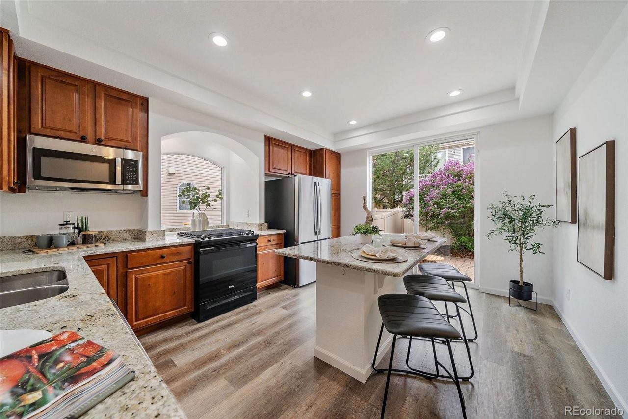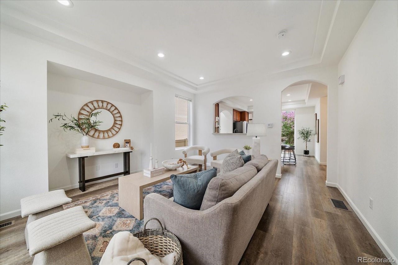 This light, bright, move-in ready home offers thoughtful updates throughout & a desirable, flexible floorplan. Charming arched openings, tray ceilings, & upgraded LED lighting are featured throughout the main level, adding character to the open layout. The kitchen has granite countertops, new SS appliances, a gas range, large island with countertop seating, & ample cabinet space. The open pass-through wall creates a spacious & connected feel to the living room while keeping the kitchen sink & surfaces out of direct view. On the main level there is also a large bathroom with newer vanity & the laundry room with new washer & dryer. Upstairs, there are 2 bedrooms & 2 renovated bathrooms, plus a flex room with a solid wood barn door-giving you the option for a 3rd bedroom, home office, or hobby room. The primary suite has a vaulted ceiling, upgraded lighting, walk-in closet, & en-suite bathroom w/ dual sinks, shower with stylish glass enclosure, matte black fixtures & accents, & tiled walls. The versatile lower level showcases huge windows, new carpet & padding, closet space with built-ins, & 3/4 bathroom, making it ideal for a private guest suite or 4th bedroom - countless possibilities for its use. Central a/c, fresh paint, and newer furnace, water heater, appliances, & engineered hardwood flooring are all additional bonuses. The fully-fenced backyard w/ paver patio just outside the sliding door provides for the perfect blend of indoor/outdoor entertaining. New sod just two years ago. Enjoy a friendly community lifestyle w/ access to parks, trails, 2 pools, 18-hole disc golf course, clubhouse, & fitness center. Riverview PK-8 is located in the community & within walking distance. Thompson River Ranch is conveniently located near coffee shops, restaurants, & great shopping in every direction, w/ unbeatable proximity to I-25 & Hwy 34 to get just about anywhere. Living here means you truly get to enjoy all that Johnstown, Loveland, Ft Collins, & Berthoud have to offer.