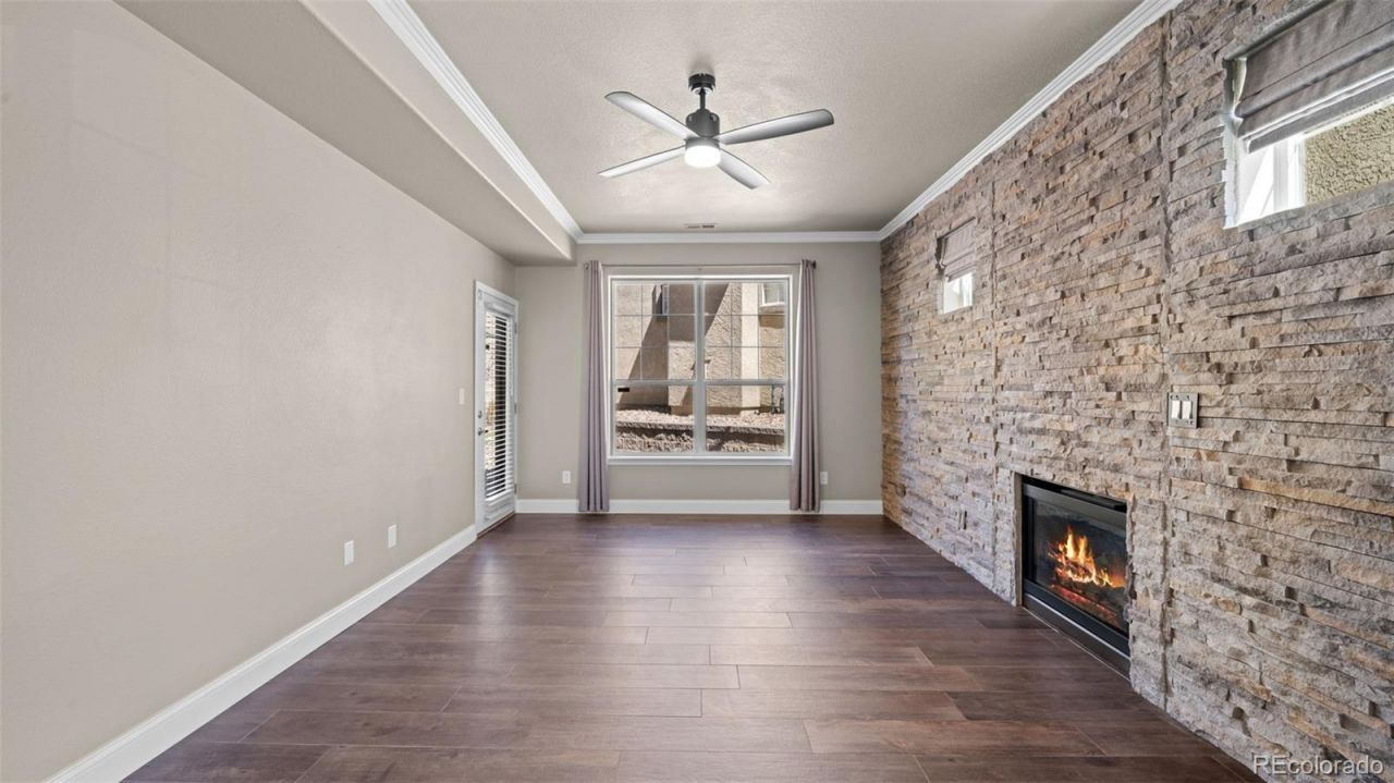 Welcome to this beautifully maintained end-unit condo located in the desirable gated community of The Village at Springs Ranch. Offering 3 bedrooms, 3 bathrooms, and over 1,600 square feet, this two-story home combines low-maintenance living with comfort and convenience. The main level features an open and inviting layout with vaulted spaces and abundant natural light. The living room is anchored by a cozy fireplace and offers walk-out access to a covered patio?perfect for relaxing or enjoying Colorados sunshine. The kitchen includes quartz countertops, a breakfast bar, and a functional design that flows seamlessly into the dining area. Upstairs, the primary suite offers a walk-in closet and private bath with double vanity and freestanding shower, while an additional bedroom and versatile loft provide flexible living space. A third bedroom on the main level is ideal for guests or a home office. Additional highlights include upper-level laundry with sink, windows, and cabinets for storage, central A/C, an attached garage, and modern finishes throughout. The HOA covers nearly everything?water, trash, snow removal, exterior maintenance, insurance, and more?making for truly easy living. Residents also enjoy access to community amenities including a pool, fitness center, clubhouse, and green spaces. Conveniently located near shopping, dining, parks, and schools, this home offers the perfect blend of comfort, convenience, and low-maintenance lifestyle.