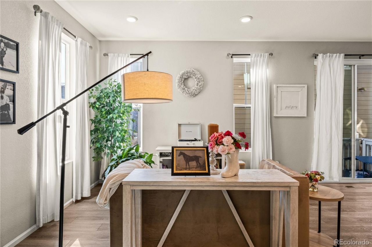 Welcome to 4346 S Netherland St! Built in 2020 in Auroras Copperleaf neighborhood, the home offers modern finishes, natural light, and a layout designed for everyday living. The main floor brings people together with an open living, kitchen, and dining area that feels bright and connected. Granite countertops, dark wood cabinetry, a large island with counter seating, and a pantry make the kitchen both functional and inviting. Recessed lighting and expansive windows keep the space light-filled throughout the day. A sliding glass door leads to a partially turfed side yard, creating an easy, low-maintenance outdoor extension of the home. Upstairs, all three bedrooms are located on the same level, along with a dedicated laundry room for added convenience. The primary suite features a walk-in closet, and a private ¾ bath with walk-in shower. Two additional bedrooms share a full bath, each finished with tile flooring, granite countertops, and coordinating cabinetry. New vinyl flooring throughout the upper level adds a clean, updated feel. The unfinished 649-square-foot basement offers room to grow, whether you envision a future family room, fitness space, home office, or additional storage. Living in Copperleaf means enjoying access to a clubhouse, pool, playground, and neighborhood trails, with Southlands shopping and dining just minutes away. Convenient access to E-470, I-225, and Denver International Airport makes commuting and travel simple across the Denver metro area and beyond. Modern construction, flexible space, and community amenities come together here in a home built for both today and whats next.