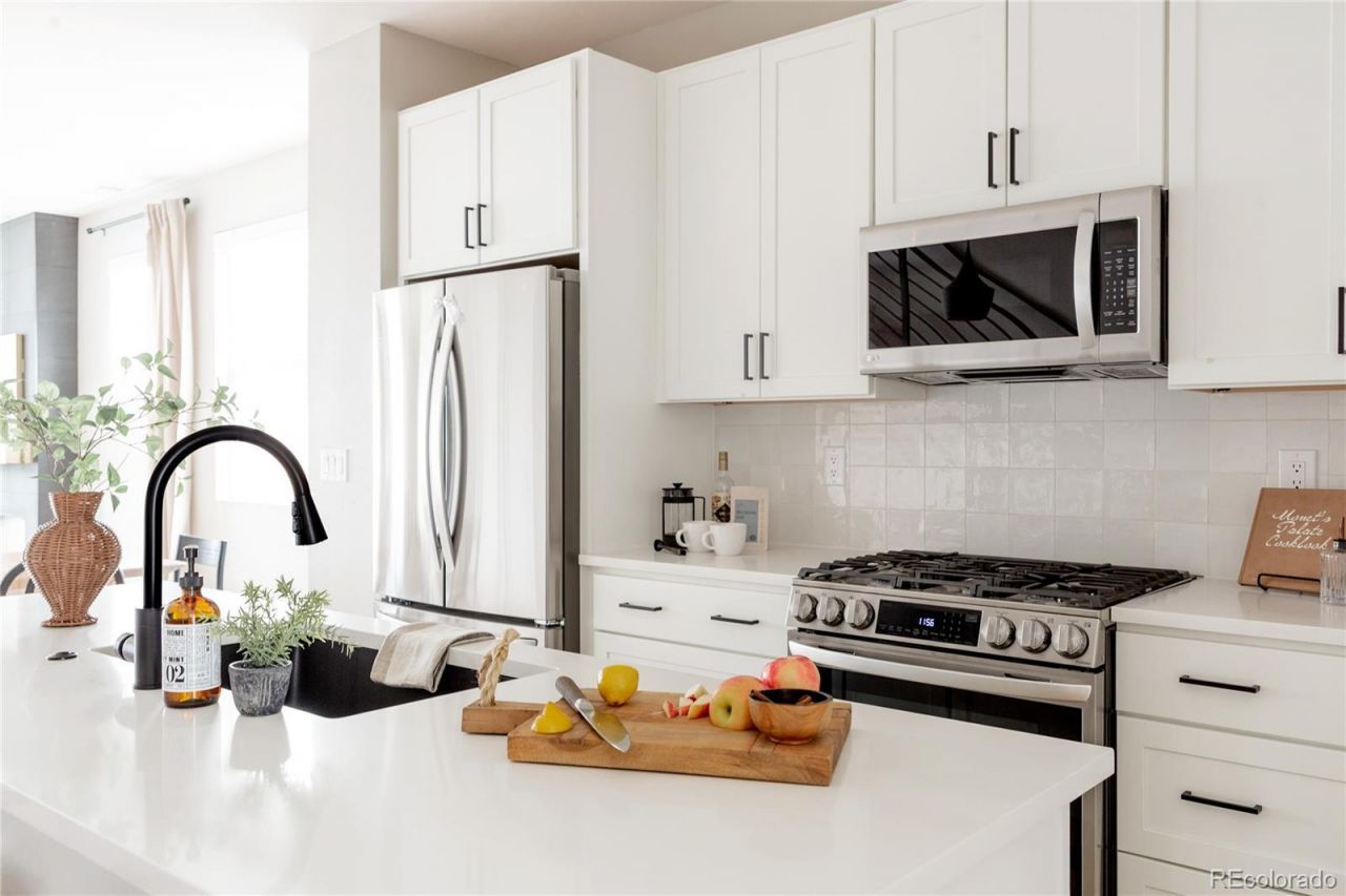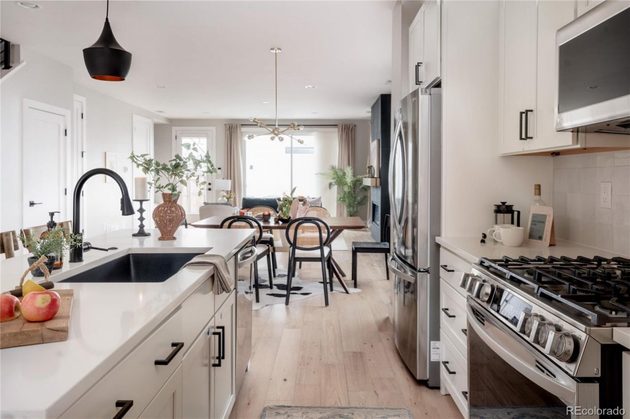 Light, bright, and airy, this south Englewood home offers clean modern style and a layout that truly works for everyday living. The open main level is filled with natural light from oversized windows, with high ceilings and solid wood floors that create a warm, cohesive feel throughout the great room, dining area, and kitchen. A fireplace anchors the living space and adds just the right amount of comfort and character.The kitchen is crisp and contemporary with white quartz countertops, LG stainless steel appliances, and generous prep space, all flowing easily into the main gathering areas for simple entertaining and daily life.One of the standout features is the upper level, with three generous bedrooms on the same floor. The primary suite includes a large walk-in closet by California Closets and a spacious, spa-inspired bath with custom tile and a glass block door. Two additional large bedrooms, a full bath, and upstairs laundry make the layout especially functional and convenient.The fenced backyard offers room for a fire pit, pets, and outdoor dining, with sprinkler systems in both the front and back for easy maintenance. A detached two-car garage with extra-high ceilings provides excellent storage potential.Located near South Broadway, you are moments from local dining, coffee shops, and some of the citys most fun neighborhood spots, making it easy to enjoy both quiet residential living and Denvers best urban experiences. Welcome home