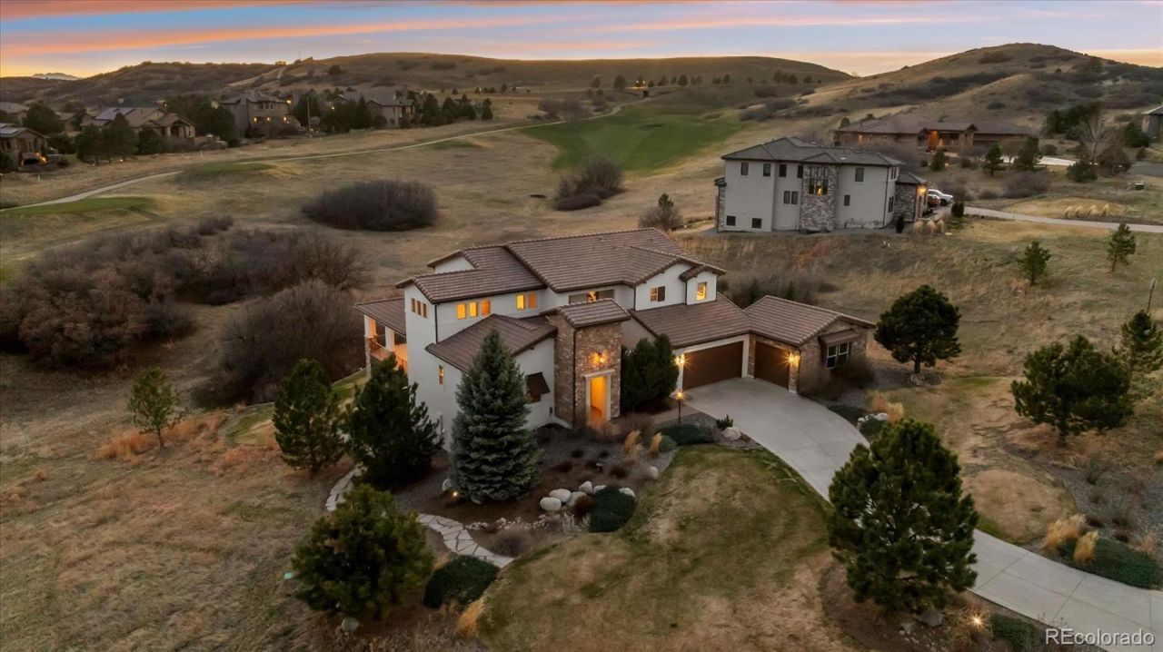 Nestled on a private 1-acre cul-de-sac Pradera site with expansive golf views, this exceptional custom home offers the perfect blend of luxury, comfort, and Colorado beauty. Built in 2013, and recently remodeled, this stunning residence features over 5,400 square feet of thoughtfully designed living space, showcasing high-end finishes, and seamless indoor-outdoor living. From the moment you arrive, youre welcomed by an inviting courtyard with a cozy fireplace?an ideal space for relaxing or entertaining. Inside, the open-concept main level is filled with natural light and panoramic neighborhood views, anchored by a spacious great room and a gourmet kitchen complete with a large center island, white cabinets, quartz counters, and a hidden walk-in pantry. The home offers a perfect balance of everyday functionality and elegant design, including a formal dining room with butlers pantry and wine cooler, as well as a refined main-level office with custom millwork. Upstairs, a versatile loft opens to a private balcony, while the luxurious primary suite features more views, a spa-inspired bath, and dual walk-in closets. An additional 2 bedrooms include en suite baths for ultimate comfort and privacy. The walkout lower level provides an incredible recreation room with wet bar and full-sized refrigerator, an exercise room and guest quarters. Outdoor living is equally impressive, with multiple patios, a covered wrap-around deck, and beautifully landscaped grounds that capture the serene surroundings. Complete with a 3-car garage and access to Praderas top-tier amenities?including golf, trails, pool, and clubhouse?this home delivers an unparalleled lifestyle in one of Parkers most sought-after communities. You will be impressed!