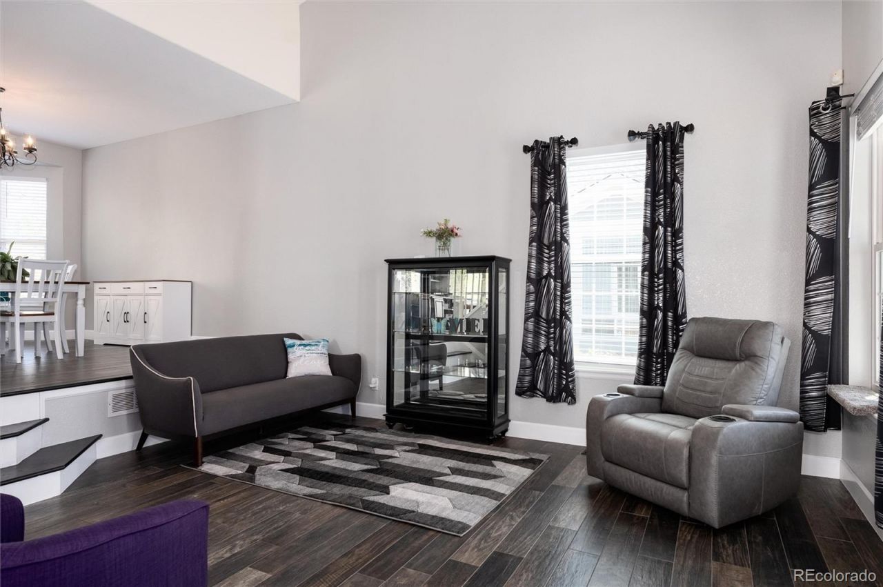Open, light, bright, extensively updated and west-facing with mountain views! This five bedroom, five bath, three car garage home in Willow Trace with over 3,400 sqft finished showcases modern updates with unparalleled character with this incredibly fun floorplan! Located comfortably in the Cherry Creek School District, the home opens to a large living room with vaulted ceilings and ample natural light. Updated flooring guides you up a few short stairs to the dedicated dining room, which opens into the extensively updated kitchen with granite countertops, stainless steel appliances and extended center island. The kitchen overlooks the private, fully fenced backyard with extended stamped concrete patio and mature landscaping with built in gas fire pit! Back inside, relax in the updated family room with floor to ceiling modern stone fireplace with concrete mantle and custom built in shelving. The laundry room with washer and dryer included, utility sink and powder room complete the main floor. Upstairs features four bedrooms, but the star of the show is most certainly the expansive Primary Suite that is nothing short of a retreat in itself with a large living area with a gas fireplace as well as a stunning, completely remodeled Primary Bath with heated flooring, quartz countertops, updated vanity and frameless glass shower! Two additional bathrooms share an updated secondary bath with updated vanity and quartz countertops and modern tub/shower combo with updated tile to the ceiling. A fourth bedroom enjoys its own private ensuite bath! But theres more! The fully finished basement offers brand new carpet and a fifth bedroom and bath perfect for a teenager that needs their own space and/or private guest quarters. No expense was spared in the heated and insulated, oversized three car garage with epoxy floor coating and 220 compressor! Dont forget to save on your home insurance and let your insurance agent know the home has a newer Class 4 Hail Resistant Roof.