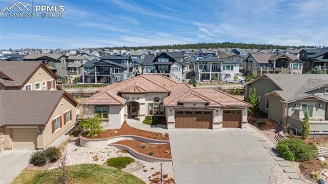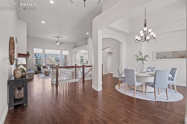 Stunning Ranch Style Home | Main-Level Living | Backs to Walking Trail in Cordera Beautifully appointed ranch-style home in the highly desirable Cordera community, offering true main-level living and backing to the neighborhood walking trail. From the moment you enter, you’re greeted by extensive hardwood flooring that leads into the impressive great room, featuring soaring ceilings, a striking stone fireplace, and a wall of windows that fills the home with natural light. The chef’s kitchen is designed for both everyday living and entertaining, showcasing a sprawling breakfast bar, center island, abundant cabinetry with pull-out shelving, top line appliances including a gas range, walk-in pantry, and a sunny dining nook. The elegant dining room overlooks the kitchen and great room, creating a seamless flow for gatherings. Unwind in the luxurious primary suite, complete with adjoining bathroom, walk-in closet, and direct access to the back patio. A secondary main-level suite with its own en-suite bath is ideal for guests or multigenerational living. A private office is tucked away for a quiet workspace. The laundry room featuring a utility sink and a convenient half bath complete the main level. The finished basement offers exceptional additional living space with a sprawling family room, dedicated media area, billiards/gaming space, and wet bar—perfect for entertaining. You’ll also find a large bedroom with en-suite bath, two additional spacious bedrooms, a full bath, and generous storage and utility space. Enjoy Colorado evenings on the covered patio overlooking the open space and trail. Located in Cordera, one of Colorado Springs’ premier master-planned communities, residents enjoy access to a vibrant lifestyle with a community center, fitness facility, outdoor pool, parks, playgrounds & miles of walking and biking trails. With top-rated schools, nearby shopping & dining, and a true sense of neighborhood connection, this is an exceptional place to call home.