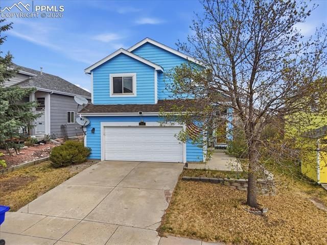 Welcome to this charming 2-story home nestled in the sought-after Stetson Hills neighborhood! Built in 1996, this 3-bedroom, 3-bathroom residence offers 1,532 finished square feet of comfortable living space, with vaulted ceilings and a warm, inviting atmosphere throughout. The main level features a spacious living room with a cozy fireplace and beautiful natural wood flooring, a ceramic tile dining room, and a well-equipped kitchen with a refrigerator, dishwasher, microwave, and oven. A convenient half bath rounds out the main floor. Upstairs, you'll find all three bedrooms, including a generous primary suite with a walk-in closet and adjoining bath. Two additional bedrooms share a full bath. The unfinished full basement offers 780 square feet of untapped potential — ready for your vision, whether a recreation room, home gym, or extra storage. The attached 2-car garage adds everyday convenience, while central air and forced-air heating keep you comfortable year-round. Situated on a fully fenced lot in District 49 with no HOA, this home is sold as-is and ready for your personal touch. Easy access to Stetson Hills Blvd makes commuting and errands a breeze. Don't miss this opportunity to make this Stetson Hills gem your own!