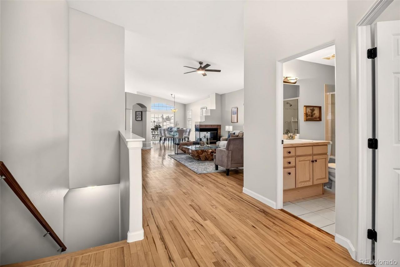 Tranquility meets convenience in this stunning Spanish-style home located in the desirable Pinecliff neighborhood. Tucked into a quiet cul-de-sac backing to a wooded ravine, this beautifully maintained end-unit home offers breathtaking mountain views & is move-in-ready! Step into the light-filled living & dining areas, where vaulted ceilings, expansive windows & a striking 3-sided fireplace create an inviting & elegant atmosphere. Just beyond, a covered terrace provides the perfect setting to enjoy both sunrise/sunset in peaceful surroundings. Designed for effortless main-level living, the home features 2 bedrooms & 2 bathrooms on the main floor, along with a spacious mudroom off the oversized 2-car garage, complete with a dedicated shop storage area. Natural hardwood flooring is complemented by durable tile in high-traffic areas, and the interior has been tastefully updated with fresh paint throughout. The kitchen is an entertainers dream, offering abundant counter space, an island, dual dishwashers, 2 pantries, and a charming breakfast nook overlooking open space & scenic views. Unwind in the luxurious primary suite, where vaulted ceilings, a cozy fireplace & serene views create a true retreat. The 5-piece ensuite bath includes dual vanities, separate closets, soaking tub, walk-in shower & water closet, all enhanced by natural light from an overhead skylight. The lower level features 9-foot ceilings & an expansive family room with a 3rd fireplace & double sliding doors that open to an oversized covered deck?enjoying the same incredible views. 2 more bedrooms & a 3/4 bath with an enclosed stone shower offer a spa-like experience for guests/family. Additional highlights include: 2 storage areas, 3 linen closets & a versatile bonus room w/ plumbing access. While the setting feels like a private escape, youre just minutes from I-25, dining, shopping & outdoor adventures like Garden of the Gods. This rare gem in Mission Ridge is a must-see that wont last long.