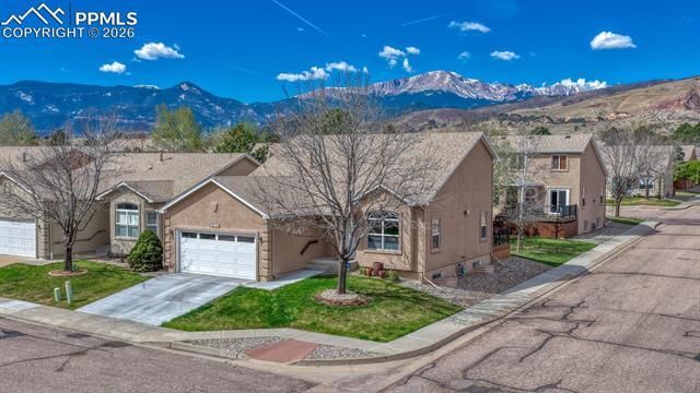 Low maintenance main level living in Northwest Colorado Springs at Pinon Glen! This patio home offers a great layout packed with upgrades! Hickory wood floor runs throughout the main level, with high vaulted ceiling in living room and unique rock formation views from front windows. Kitchen features white cabinets, granite counters, tile backsplash, stainless steel appliances (2023), island, pantry, and breakfast nook. Graced with tile surround and built-in shelves, double-sided gas fireplace serves living and dining rooms. Enjoy easy indoor-outdoor dining with walk out to deck. Main level primary bedroom offers wood floor, walk-in closet, and attached five-piece bathroom with dual vanity, granite counter, and updated lighting and fixtures. Main level includes powder room and laundry room with newer washer and dryer (2023)! Sunny loft overlooking living room features mountain views, vaulted ceiling, and closet, making it totally versatile as a second living room, office, playroom, or fourth bedroom. Two bedrooms, full bath, and storage closet complete upper level. All new carpet! Full unfinished basement gives storage space and room to grow. Composite deck is private space for gardening, entertaining, and relaxing. You’ll love the mechanical awning to add shade when you need it and retract when you don’t. Community walking path behind the home runs among mature trees and green grass. More perks include custom window treatments, central A/C, humidifier, hail resistant Class IV roof, and new driveway, walkway, and exterior paint. Visit nearby Pinon Valley Open Space, Ute Valley Park, and Popes Bluff anytime! Locally loved Blodgett Open Space, internationally acclaimed Garden of the Gods, and I-25 are convenient too! Rent Pinon Glen clubhouse to host meetings, gatherings, and events. Self-managed HOA upkeeps landscaping, provides exterior building maintenance, and shovels snow including driveway and walkway to front door. Say yes to this great house and great community!