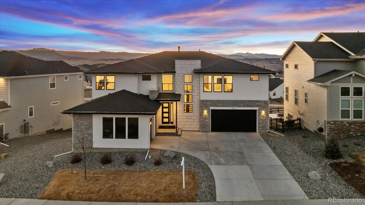Perched at the highest point in prestigious Montaine, this chicproperty offers a rare combination of contemporary design and sweeping panoramicviews. Situated on a premier high-elevation cul-de-sac lot, this 2023-built masterpiececaptures the essence of modern Colorado living with dramatic architecture and high-endfinishes throughout.Inside, the open and bright floor plan is anchored by a stunning two-story great room,where towering windows flood the space with natural light. The gourmet kitchen is achefs dream, featuring premium cabinetry, a massive walk-in pantry, and sleek slabsurfaces that perfectly complement the wide-plank flooring. Glass sliding doorsopen to an extended covered deck, creating a seamless indoor-outdoor flow perfect forentertaining against a backdrop of Rocky Mountain vistas.Upstairs, a spacious loft overlooks the great room, framed by upgraded modern cablerailing. The primary suite is a true sanctuary, complete with a cozy fireplace, dual walk-in closets, and a spa-inspired bath featuring a walk-in shower and designer finishes. Anunfinished walkout basement that opens to the fenced backyard offers over 1,700 sq. ft.of potential, ready for your custom vision. The split 3-car garage offers flexible space fora home gym, workshop, or luxury vehicle storage. Enjoy access to Montaines resort-style amenities, including the clubhouse, pool, fitnesscenter, and miles of trails. Situated in the coveted Douglas County school district andjust minutes from downtown Castle Rocks boutique shopping, outlet malls, and finedining, this luxury home offers the ultimate in modern living and convenience. Hurry!This property wont be available long. Come see it today!