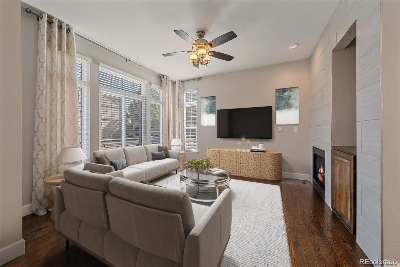 Bright and airy end-unit townhome in the heart of Centennial offering the ease of maintenance-free living within a stylish, open floor plan. Meticulously maintained and truly move-in ready, this home showcases pride of ownership throughout ? featuring a new furnace and A/C, new water heater, new radon mitigation system, new windows, plus an updated kitchen, modern lighting, and fresh paint. New trex deck with iron rails is scheduled for install at a future date.The sun-filled main level boasts rich hardwood floors and an open-concept layout perfect for everyday living and entertaining. The kitchen is highlighted by a slab granite peninsula, stainless steel appliances, and seamless flow into the dining area and vaulted family room with a cozy gas fireplace.Upstairs, youll find three bedrooms and two full bathrooms, including an oversized primary suite complete with a spacious walk-in closet and five-piece bath. Situated on green space, this rare end-unit offers great light and privacy.The unfinished basement with laundry and an egress window provides excellent potential for future expansion. An attached two-car garage completes the home.Located within the highly acclaimed Littleton school district and just minutes to trails, shopping, dining, and light rail ? this is one you wont want to miss.