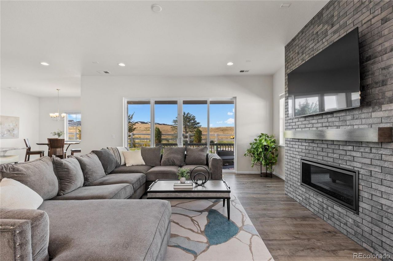 Set within the scenic enclave of Stone Creek Ranch, this 2022 ranch-style home captures sweeping views of Colorados rolling hills and offers a sophisticated take on modern, main-floor living. Expansive windows bathe the main level in natural light, creating a warm and welcoming atmosphere equally suited for quiet mornings and effortless entertaining.The chefs kitchen is the true centerpiece, featuring an oversized island, timeless subway tile backsplash, stainless steel appliances, and a walk-in pantry. The space flows seamlessly into the dining area and great room, where a sleek fireplace provides a stylish focal point. Sliding glass doors invite indoor-outdoor living and frame the surrounding landscape.The primary suite serves as a serene retreat with peaceful views, a spa-inspired bathroom, and a generous walk-in closet. The finished lower level expands the homes versatility, offering a wet bar, media area, and flexible spaces ideal for guests, a home gym, or creative pursuits.Additional highlights include a three-car garage, solar panels, and thoughtful designer finishes throughout. Residents also enjoy access to outstanding community amenities, including a pool, clubhouse, parks, and trails. This exceptional home delivers modern comfort, functionality, and outstanding value?main-floor living at its finest.