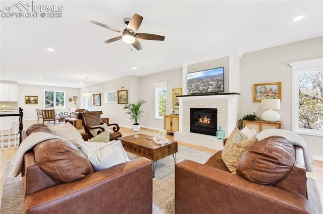 Welcome to your fully remodeled Colorado retreat—where effortless main-level living meets breathtaking views of Pikes Peak from nearly every window. Perfectly positioned in a quiet, private neighborhood just steps from Pulpit Rock Park, this ranch-style home offers the rare combination of peaceful surroundings and unbeatable convenience. Inside, you’ll find a thoughtfully updated interior designed for both comfort and style. The beautifully remodeled kitchen is the heart of the home, featuring stunning leathered marble countertops, updated cabinetry, and a custom coffee bar—perfect for slow mornings or entertaining guests. Rich hardwood floors flow throughout the main level, tying together the open, light-filled living spaces. The primary suite is a true escape, complete with a fully renovated 5-piece bath, a large soaking tub, and a walk-in tile shower with rain head that brings a spa-like feel to your everyday routine. Every bathroom in the home has been tastefully updated, offering a cohesive, timeless look throughout. Downstairs, the walk-out basement expands your living space with a cozy fireplace, two additional bedrooms, and a generous workshop/storage area with incredible potential—ideal for a future home gym, mother-in-law suite, guest quarters, or co-living setup. Step outside onto the back deck and take in those iconic Pikes Peak views—whether you’re hosting friends or unwinding at the end of the day, this space delivers. While the setting feels tucked away and serene, you’re truly in the center of it all. Enjoy easy access to nearby Pulpit Rock Park and trails with a private neighborhood trailhead just down the street. Walk to local favorites like Third Space Coffee and Crunch Fitness, and reach grocery stores, dining, and shopping in just minutes. This is more than a home—it’s a lifestyle. A rare opportunity to own a fully updated ranch in one of Colorado Springs’ most desirable locations, where nature, comfort, and convenience come together seamlessly.