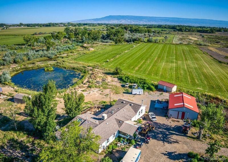 Exquisite land opportunity in Montrose County. This parcel is 46.6 acres of prime farmground with Dry Creek running the entirelength of the property. There are 5 ponds on the property; the largest is deeded 3 acre feet of water storage. The waterfront andponds allow a sanctuary for waterfowl. 38 Shares of UVWUA irrigation water. Established and utilized hay fields are currentlyleased for the 2024 growing season. Tucked in and secluded; this is a private piece of paradise. Property has unlimited possibilitiesand potential. 1999 triple wide 2444 sq ft mobile is on the property. Mobile home is in need of repairs; but is used as the primaryresidence currently. There is a 30x130 greenhouse as well as a large workshop/garage with 3 garage doors. Other outbuildingsinclude a primitive guest cabin wired but not hooked to electricity. Underground insulated food cellar; chicken coop; and storageshed.