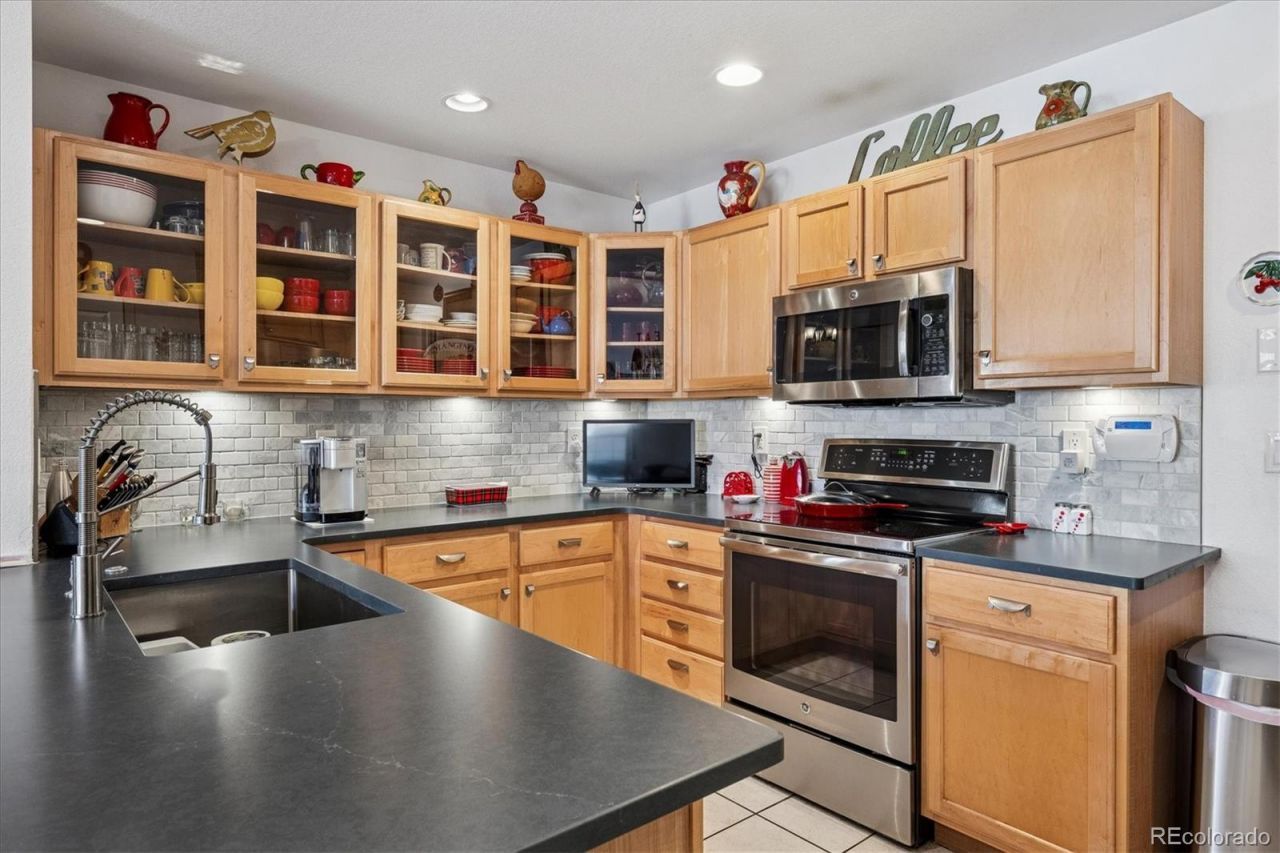 ***One of the Largest Homes in Park Square at Lowry with a Fully Finished Basement************Welcome to Park Square at Lowry, where walkable convenience meets modern comfort in one of Denvers most desirable neighborhoods. This beautifully updated 3-bedroom, 4-bath home offers an impressive 2,488 finished square feet?significantly more above-grade and total living space than many recent sales, and includes a completely finished basement. The inviting main level showcases bamboo hardwood flooring, abundant natural light, and a striking see-through gas fireplace connecting the living and dining areas?perfect for entertaining. The chef-inspired kitchen stands out with quartz countertops, light oak cabinetry, stainless steel appliances (Fisher & Paykel dishwasher, GE induction cooktop and microwave, Frigidaire Gallery refrigerator), pantry storage, tiled backsplash, under-cabinet lighting, can lighting, tile flooring, and a convenient utility sink. A main-floor laundry room with new washer and dryer adds everyday ease, while the oversized garage includes a new LiftMaster opener.Upstairs, enjoy a bright loft/TV room with Hickory-tone LVT flooring, a full bath, and two spacious bedrooms. The primary suite offers a true retreat with a luxurious 5-piece bath featuring a soaking tub, walk-in shower, double sinks, and generous closet space. The second bedroom features bamboo flooring and a ceiling fan for added comfort.The fully finished basement is a rare and valuable upgrade, providing additional living space not found in many nearby comparable sales. It includes a large great room, a ¾ bath with tiled surround and river-rock shower floor, a walk-in closet, and a versatile office or bedroom with an egress window for safety. Schedule your showing today!Ask about special financing incentives through Guild Mortgage with many different programs to fit your needs, such as 3-2-1 Buydowns and programs that offer money towards closing costs!