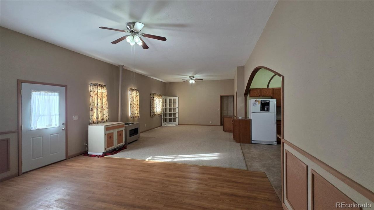 Experience refined small-town living in this beautifully updated 3-bedroom, 1-bath residence featuring an elegant open-concept design enhanced by soaring 10 ft ceilings and impressively large bedrooms. Thoughtfully maintained, the home offers updated electrical wiring, newer kitchen cabinetry, and a roof replaced in 2022, ensuring modern comfort and long-term peace of mind. Set on an expansive fenced corner lot adorned with mature trees, the property also includes two premium garage structures?an oversized 3-bay garage ideal for workshop use or recreational vehicles, and an additional 3-car garage providing ample parking and storage. Blending spacious interior living with exceptional functionality and high-value improvements, this home presents a rare opportunity to own a distinguished property in the heart of Julesburg. This property is being sold in As Is condition, with all faults. Buyer acknowledges and accepts that buyer is purchasing the property in its current condition and without any representations, guarantees, or warranties from seller, either expressed or implied, as to suitability or condition.