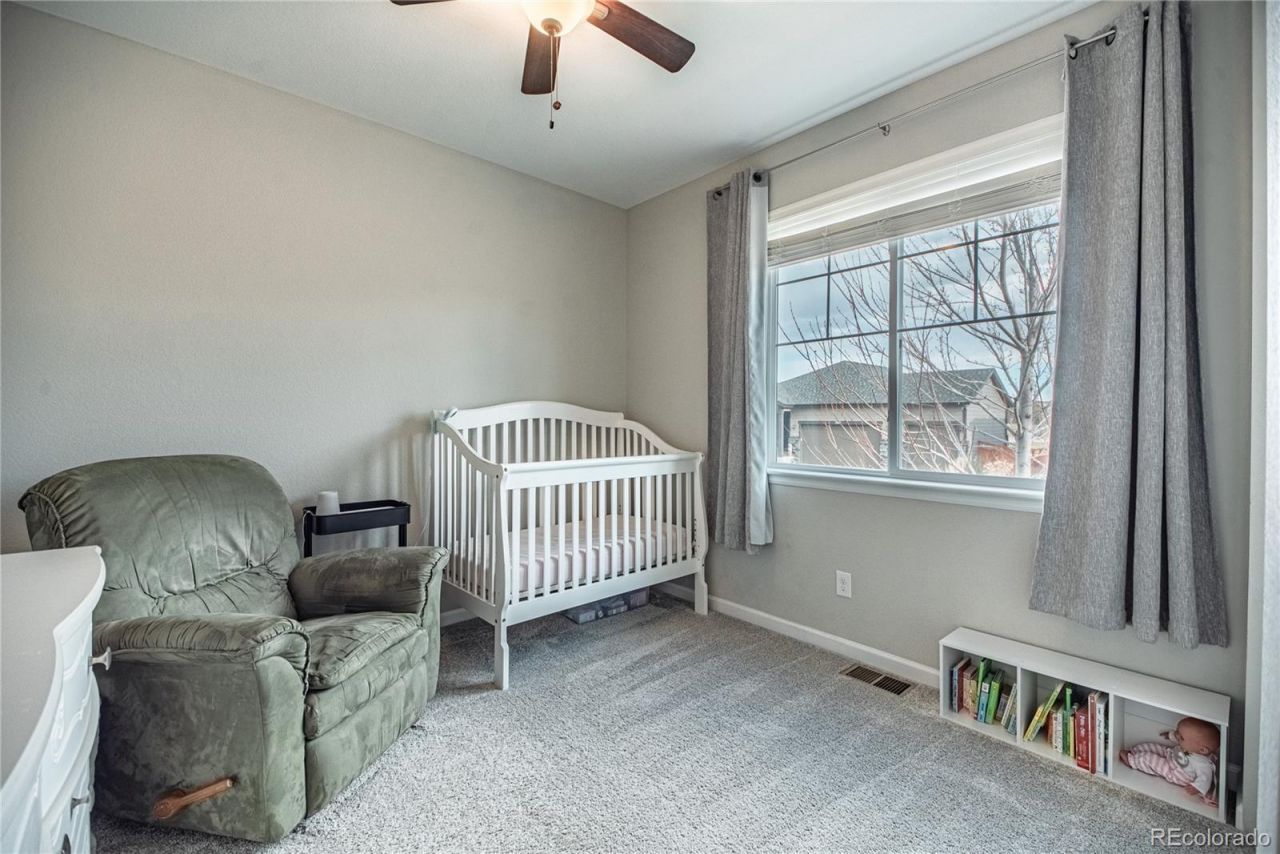 This stunning 5-bed 3-bath ranch home combines energy savings, modern luxury, and one of the largest, level backyards in the neighborhood. From the moment you step inside, youll love the open-concept great room where the upscale kitchen, dining area, and family room flow seamlessly together, perfect for everyday living and entertaining. The kitchen is a highlight with quartz countertops, breakfast bar seating, double ovens, a gas cooktop, stainless steel appliances, extended-height cabinetry, and a large walk-in pantry. The thoughtfully designed floor plan places the spacious primary suite on one end of the main level, offering a peaceful retreat with a walk-in closet and a spa-style bath featuring dual vanities and a walk-in shower. On the opposite side of the main floor, youll find more bedrooms and a full bath, providing privacy for family or guests. The finished basement boasts 9-foot ceilings and a massive open area ideal for a media room, game room, or second family room, plus two separate bedrooms, another full bath, and a large unfinished storage room with built-in shelving. Step outside to enjoy one of the most desirable backyards in this Cobblestone neighborhood, complete with low-maintenance artificial turf and south-facing position reducing winter snow and ice. The 3-car garage includes built-in shelving, and the home also has paid-off solar panels that provide enough energy to add a hot tub and an electric car charger. Other upgrades include a larger high-efficiency A/C unit, quiet garage door openers, and a paid-off Vivint security system with panel, doorbell, and two cameras. The homes location is also a highlight ? just minutes from Red Hawk Ridge Golf Course, and a short drive to The Ridge at Castle Pines North, with easy access to walking and biking trails, top-rated schools, shopping, dining, and commuter routes. This is truly a rare opportunity to own an energy-efficient, move-in-ready ranch home in one of Castle Rocks best neighborhoods.