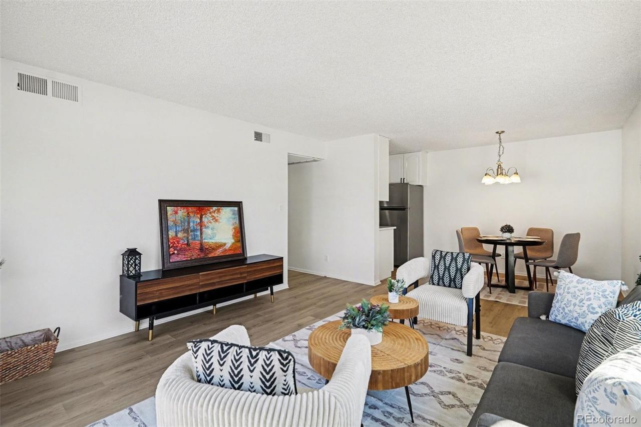 Welcome to this stunningly updated retreat in the heart of the Denver Tech Center! This fully remodeled end-unit condo perfectly blends modern elegance, comfort, and convenience?offering a stylish living space designed for todays lifestyle.Located on the top (third) floor with no neighbors above, this corner unit provides added privacy and abundant natural light throughout. Step inside to discover laminate flooring, fresh paint, and an updated kitchen and bathroom.The spacious living room flows seamlessly into the dining area and beautifully updated kitchen, featuring modern countertops, a tile backsplash, and new appliances?perfect for both everyday living and entertaining.Step out onto your private balcony and enjoy your morning coffee in a peaceful, private setting. The primary bedroom offers a generous walk-in closet, while the second bedroom is spacious and conveniently located next to the updated full bathroom.Additional highlights include a reserved carport parking space, ample guest parking, and a laundry room located in the building near your private storage locker (#301).Residents of Whispering Pines enjoy fantastic HOA amenities, including a clubhouse with a fitness center, pool, and tennis courts. The community is adjacent to the beautiful 35-acre Rosamond Park, offering trails, open space, and outdoor recreation just steps from your door.With easy access to I-25, I-225, and the Denver Tech Center, plus nearby restaurants, shopping, and entertainment, this move-in-ready end-unit condo truly has it all. Dont miss your opportunity?schedule your private showing today!