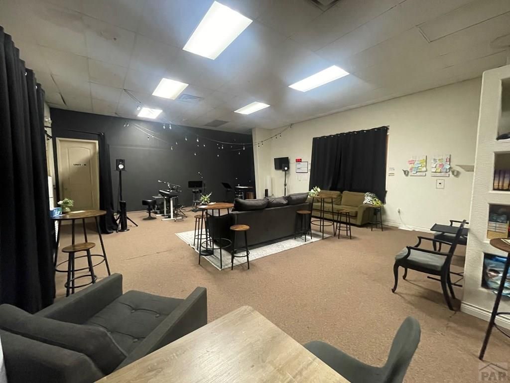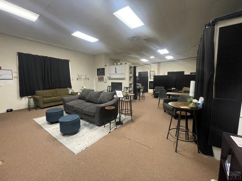 Approximately 1,500sqft of space available, high ceilings, fireplace. Currently used as a church gathering space.