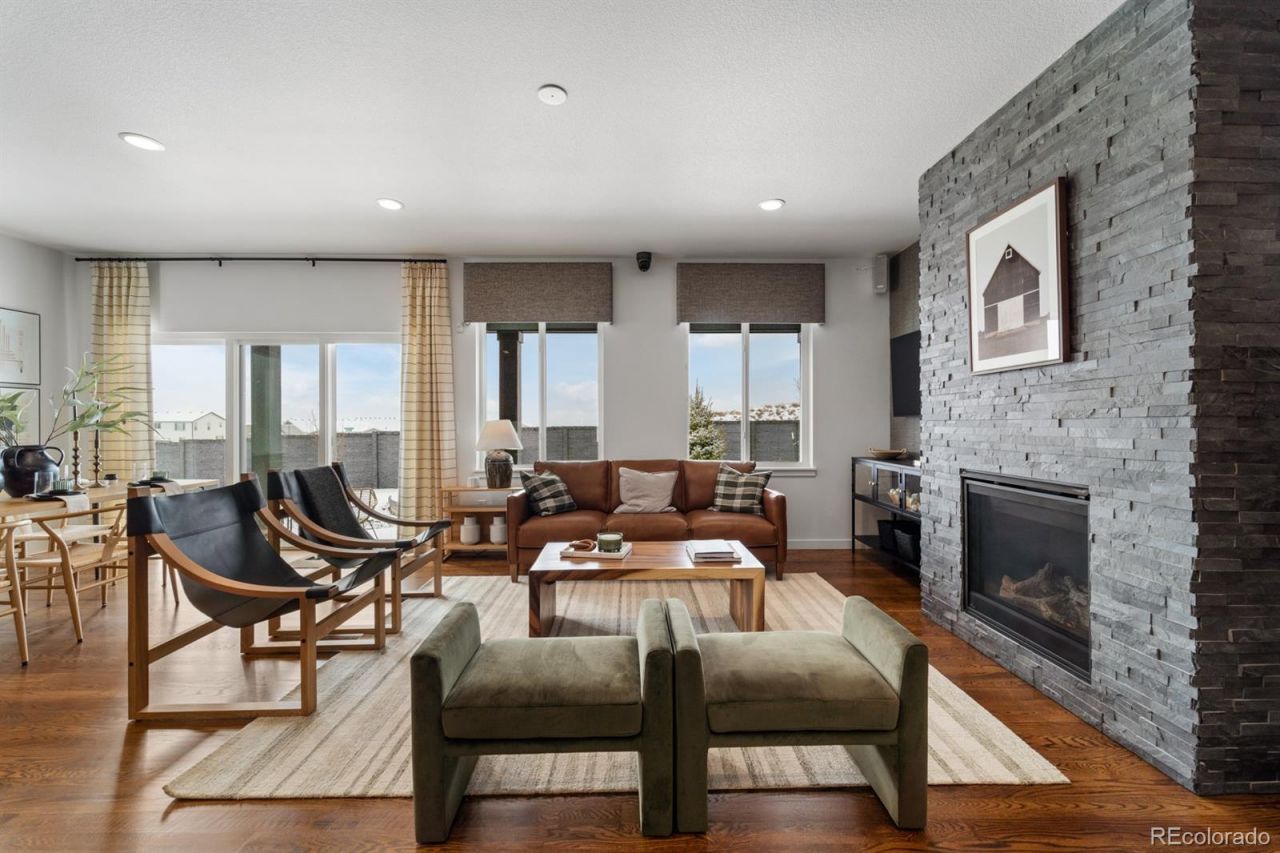 Experience luxury living in this stunning Vantage Homes former model, perfectly positioned to capture breathtaking, unobstructed views of Pikes Peak. Located in the highly sought-after School District 20, this meticulously crafted home offers a rare combination of designer finishes, functional elegance, and outdoor beauty. Step inside to soaring ceilings, expansive windows, and an open concept floor plan that fills the home with natural light and showcases the mountain vistas from nearly every room. Thoughtfully designed upgrades include gourmet kitchen appliances, quartz countertops, custom cabinetry, luxury plank flooring, and a spa inspired primary bath delivering both style and comfort. Entertain effortlessly in the spacious living and dining areas, or take the party outside to your fully landscaped backyard oasis. With a covered patio, professionally designed landscaping, full fencing and uninterrupted views, the outdoor space is an extension of the homes high-end design. From top-rated schools and nearby trails to modern amenities and a vibrant community, this home offers not just a place to live but a Colorado lifestyle worth investing in. With the turnkey condition and model quality finishes, this is the one youve been waiting for.