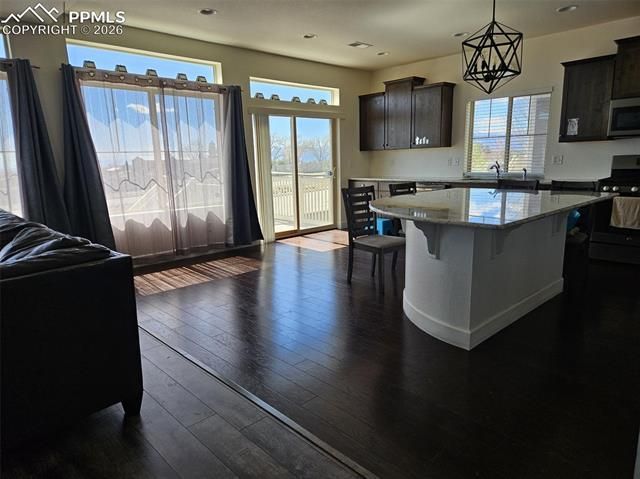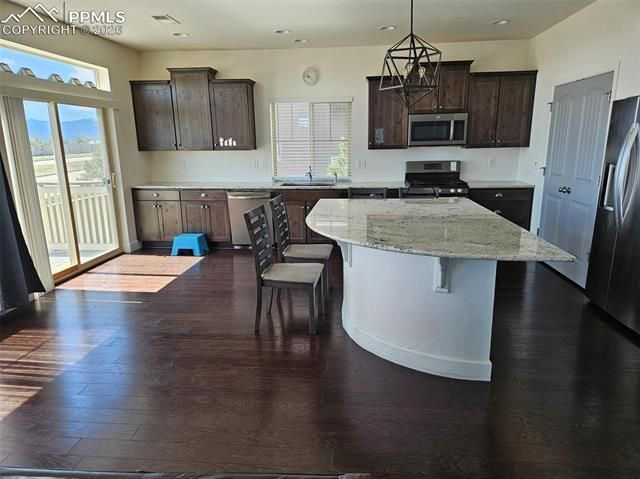 Welcome to a beautifully maintained home on a corner lot in a quiet cul-de-sac in the highly sought-after Banning Lewis Ranch community! Enjoy stunning Pikes Peak views and enhanced privacy with no rear neighbors. Built in 2016, this spacious 3,296 sq. ft. home- with AC. Offers 3 bedrooms, 3 baths, and a 3-car garage. The open-concept main level features a gourmet kitchen with granite countertops, stainless steel appliances, and a large center island that flows seamlessly into the dining and living areas— to walk out to Patio. Upstairs, you'll find a generous loft, laundry room, and a luxurious primary suite with a walk-in closet and 5-piece bath. Wood floor home! The full unfinished basement provides incredible potential for a 4th bedroom, an additional bathroom, and a spacious family or recreation room. Banning Lewis Ranch offers exceptional amenities including award-winning K–12 Banning Lewis Academy charter schools, a clubhouse, fitness center, dog park, Olympic-size pool, tennis and pickleball courts, as well as extensive trails, parks, and open space. Conveniently located near all military bases, shopping, dining, and entertainment. In the winter, enjoy snow play in the neighborhood; in the summer, you might even catch a double rainbow in the sky. This move-in ready home is a must-see in one of Colorado Springs’ most popular master-planned communities!