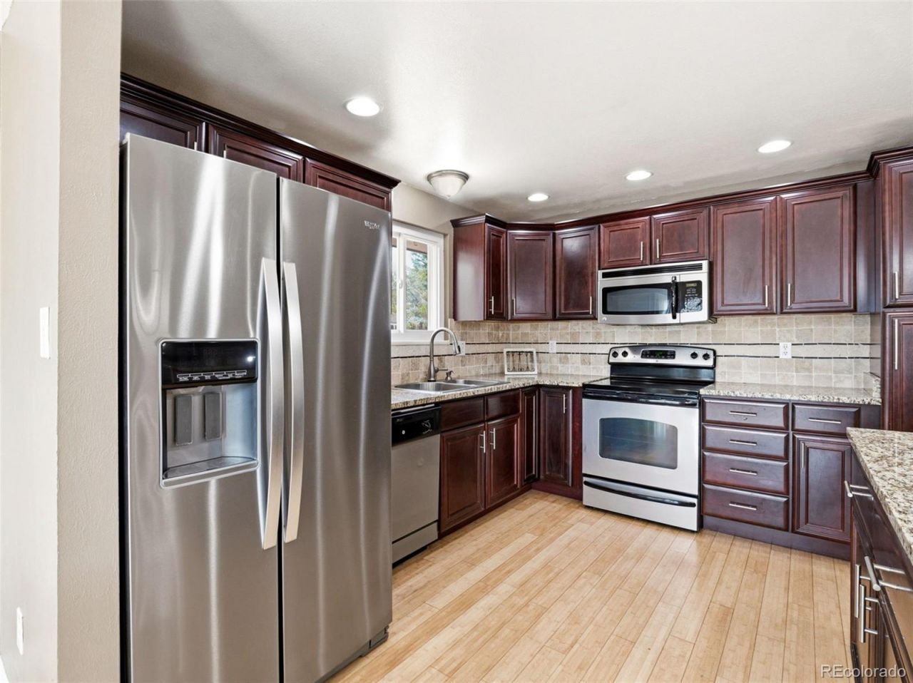 Welcome home to this multi-level home tucked between custom homes in a quiet, private neighborhood just minutes from the heart of Olde Town Arvada. Offering the perfect mix of character, space, and location, this is the kind of home buyers wait for. Inside, youll find warm and inviting finishes throughout, including bamboo flooring, granite countertops, rich cherry cabinets, and stainless steel appliances that elevate the kitchen space. A charming bay window fills the living room with natural light and adds to the homes welcoming feel. The spacious multi-level layout offers room for everyone, highlighted by a huge great room in the lower level ideal for gatherings, game nights, or simply spreading out and enjoying everyday life and cozy up with the sprawling fireplace and great place to unwind. The lower level also features a dedicated laundry room adds convenience and functionality. Step outside to a large backyard designed for enjoying every season. The inviting trex deck is ideal for entertaining, summer BBQs, or unwinding at the end of the day with plenty of room to play, garden, or personalize the outdoor space. All of this in an unbeatable location with easy access to Olde Town Arvadas shops, dining, breweries, community events, parks, and light rail, making it easy to enjoy everything this vibrant area has to offer. Homes with this much space, charm, and location do not come along often.