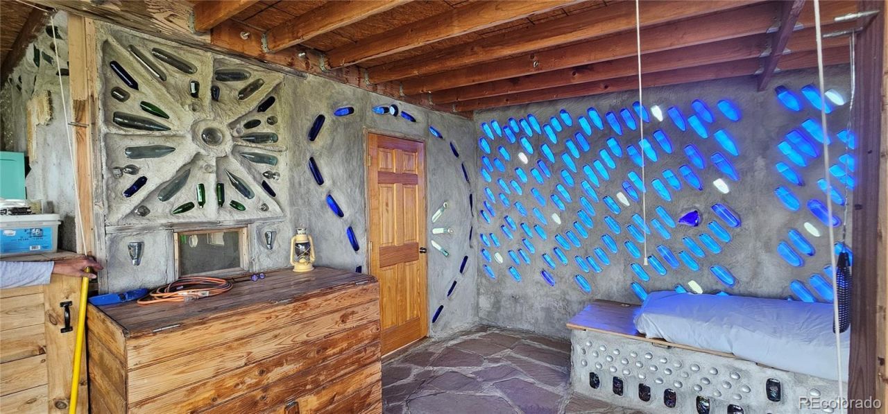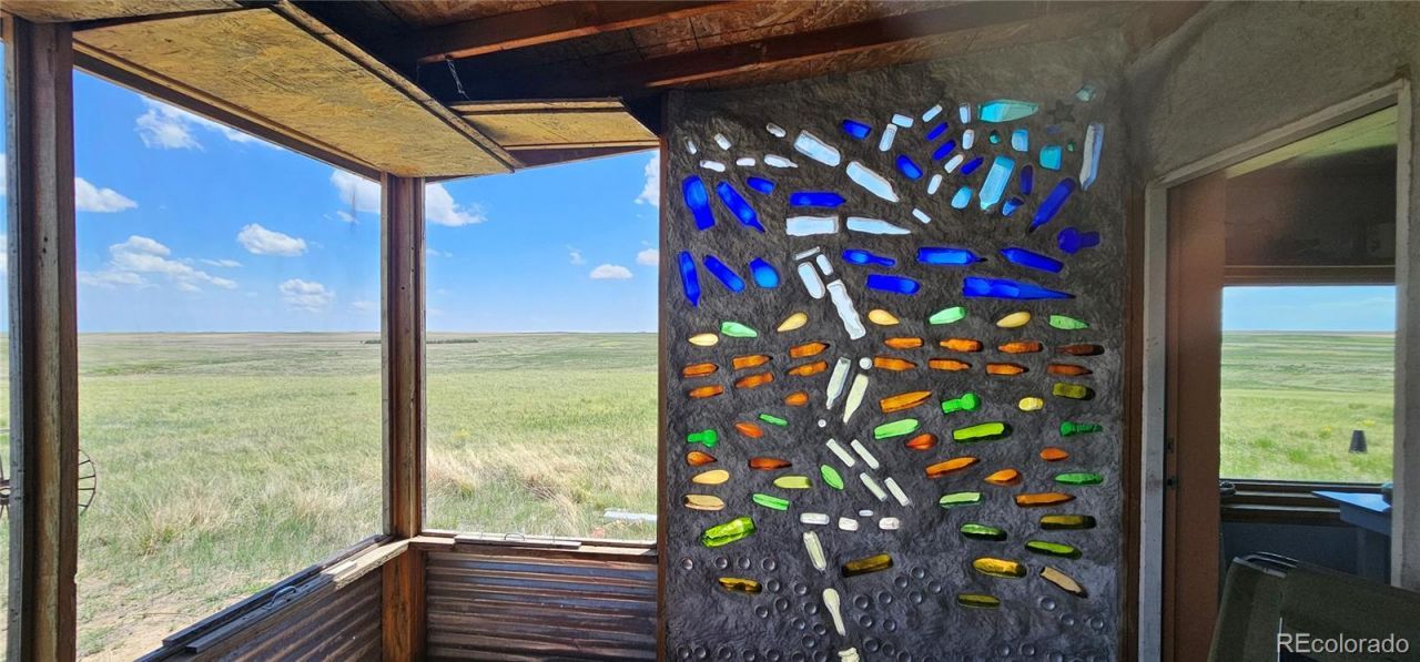 VERY RARE Opportunity! Unique COTTAGE ~ SOLAR power ~ ONE OF A KIND off grid ~ with ACREAGE !! Here is your chance to own 40+/- acres in the quiet serene plains of Eastern Colorado, that includes a cottage like no other. This rare little gem is truly a masterpiece of creativity! It is straw bale construction with a metal roof, solar panels for electricity and 2 water catching systems with pumps and gravity feed barrels. There are 3 extensive enclosed and screened porches with sleeping areas that all have the beauty of colored glass walls emanating rays from the abundant sunshine outside. A solarium and loft area add to the possible sleeping niches and are just as charming and full of character as the rest of this little cottage. The Kitchen and shower have running water from the gravity-fed stored water system, and you can truly connect with nature and breathe the fresh country air from the detached Latrine (no running water system). There is masterful and unique tile work throughout along with the glass bottle walls that create beauty all around you. Most of the furnishings are included, so this is ready for you to start enjoying some peaceful starry nights and sunny country days! Much more to explore with this property Call today!