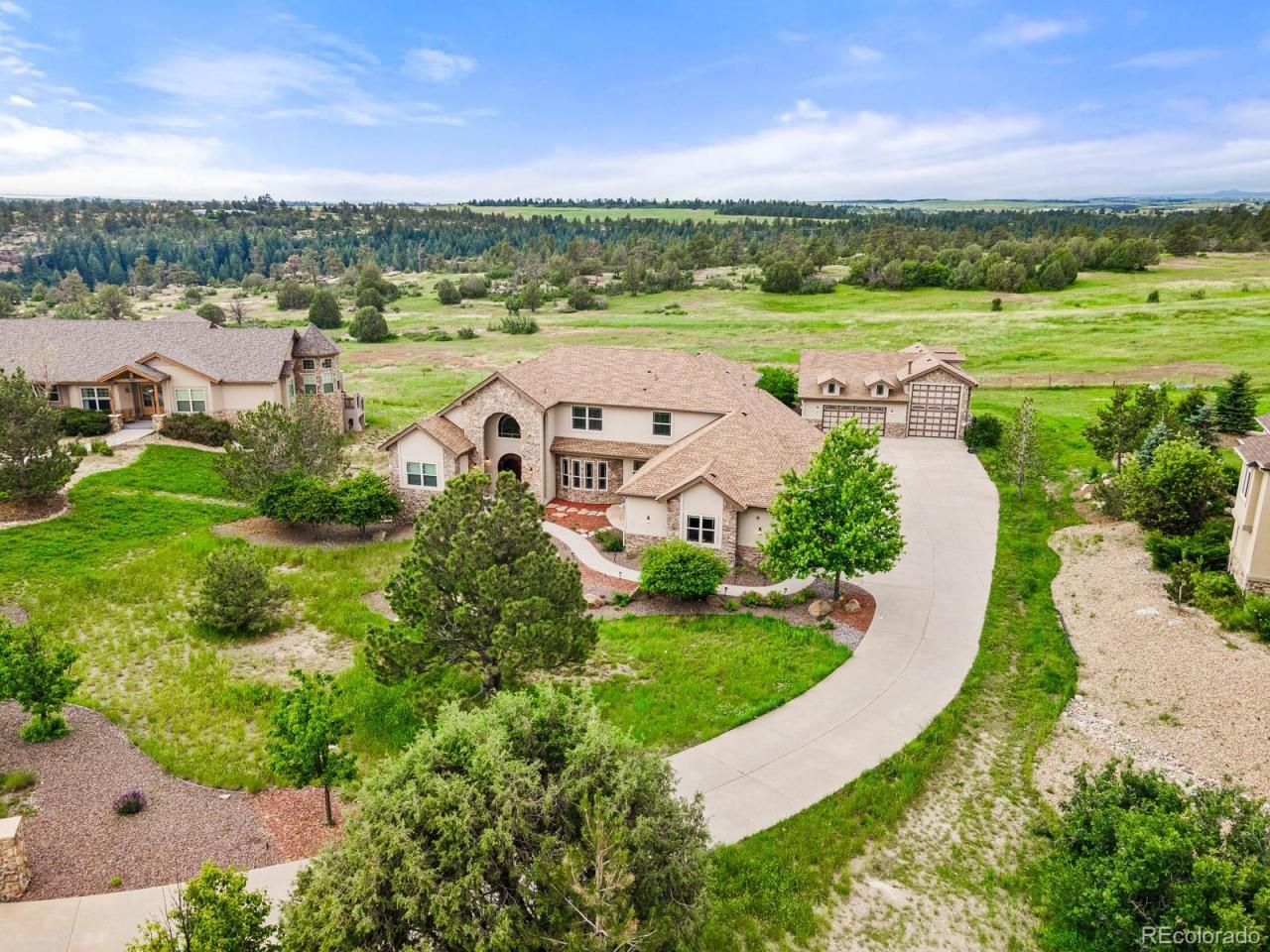 Edit mortgage details for a more accurate paymentNestled in the coveted Canyon Crest Estates, this custom home impresses with exceptional finishes throughout. Breathtaking architectural details include spiral staircases, floor-to-ceiling windows, soaring vaulted ceilings and three fireplaces. On the main, youll find intimate spaces for dining and gracious entertaining along with more connected spaces conducive to everyday living including a large main floor laundry room. Overlooking the family room featuring a cozy fireplace is a sprawling kitchen equipped with stainless appliances, a six-burner gas stovetop and double ovens, miles of counter space and cabinetry, huge center island and convenient pantry. The main-floor primary is a private retreat with a cozy fireplace, generous walk-in closet, private deck and dreamy spacious bathroom. Upstairs, there are three more bedrooms, each with walk-in closets + ensuite baths. The massive walkout lower level provides over 2,600 finished sq ft focused on entertaining and hosting guests. Here youll find a large wet bar, recreation area, home theater room, and two more guest suites. A movie lovers dream...game nights...Netflix binging...there are endless opportunities in the theatre that comfortably sits 6. This extraordinary home sits on just under an acre of land and provides awe-inspiring, southern views of the Castlewood Canyon meadows from the interior, as well as its multiple decks, patios and outdoor seating areas. Theres a fully fenced and park-like yard with lush grassy space for pets and play, plus a spacious driveway and multiple garages providing seemingly infinite parking capacity, including an RV bay. A rare find, this coveted lot offers endless wildlife viewing. The home is outfitted with a whole house fire suppression system, security system and built-in speakers. One year comprehensive home warranty. Perfect for car enthusiasts or mother-in-law, multigenerational living and nanny quarters. Located 10 min. from Downtown Castle Rock.